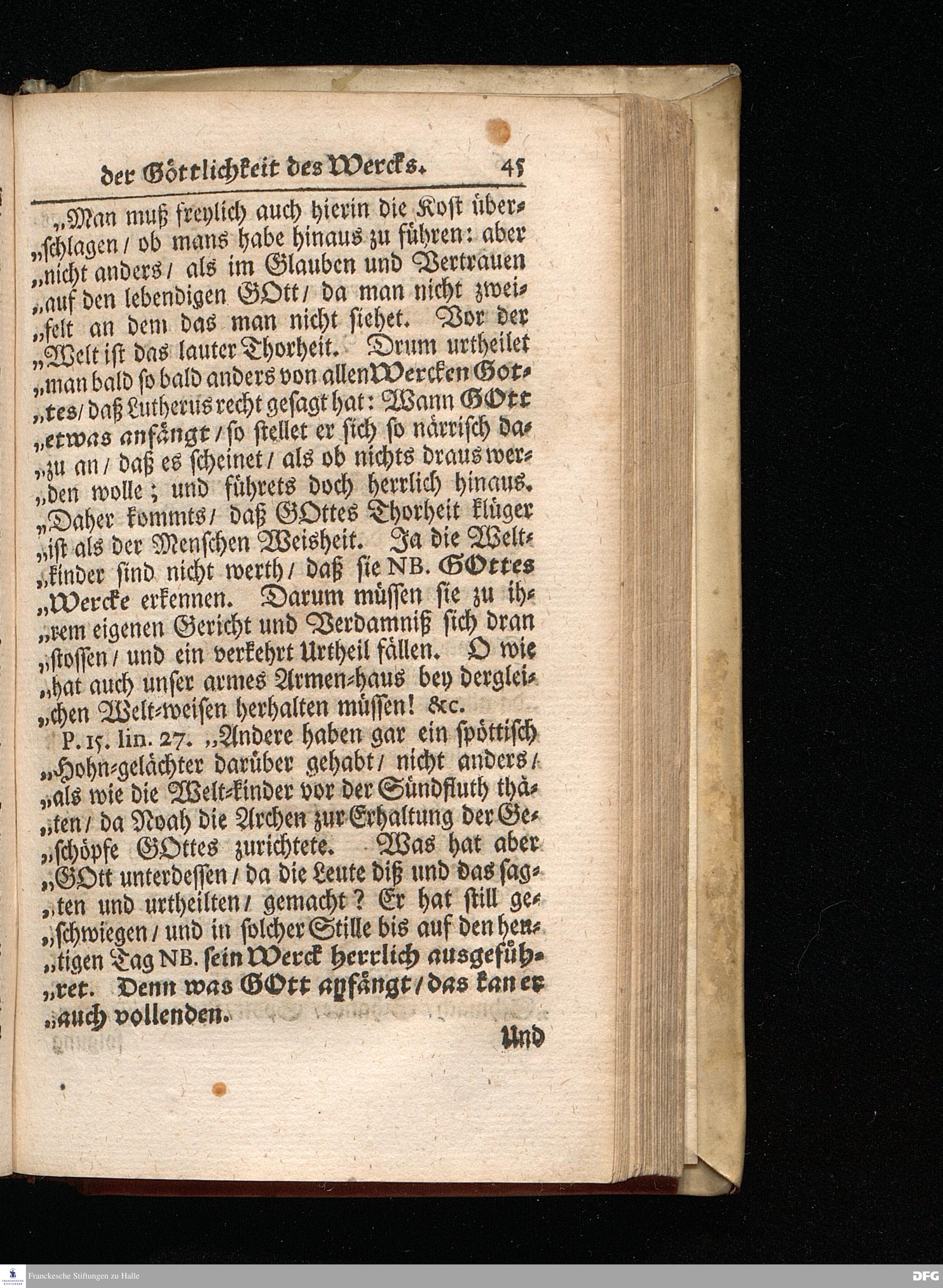 Segens=volle Fußstapfen des noch lebenden und waltenden liebreichen und getreuen GOttes / Zur Beschämung des Unglaubens und Stärckung des Glaubens entdecket durch eine wahrhafte und umständliche Nachricht von dem Wäysen=Hause und übrigen Anstalten zu Glaucha vor Halle: Welche im Jahr 1701. zum Druck befördert; ietzo aber zum dritten mal ediret / und bis auf gegenwärtiges Jahr fortgesetzet von August Herm.Francken / S.Theol.Prof.und Past. Halle / in Verlegung des Wäysen=hauses / MDCCIX.
