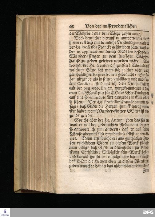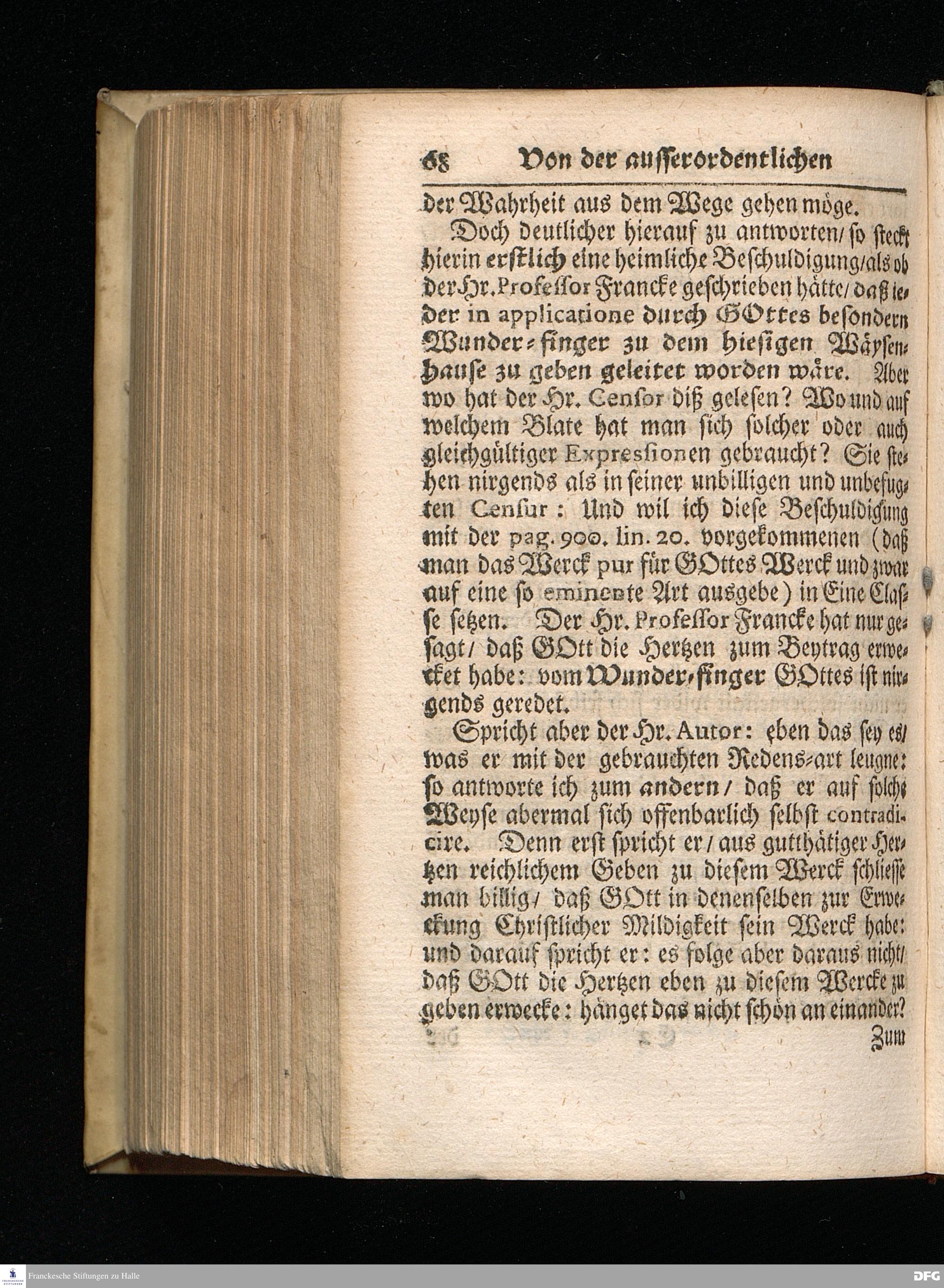 Segens=volle Fußstapfen des noch lebenden und waltenden liebreichen und getreuen GOttes / Zur Beschämung des Unglaubens und Stärckung des Glaubens entdecket durch eine wahrhafte und umständliche Nachricht von dem Wäysen=Hause und übrigen Anstalten zu Glaucha vor Halle: Welche im Jahr 1701. zum Druck befördert; ietzo aber zum dritten mal ediret / und bis auf gegenwärtiges Jahr fortgesetzet von August Herm.Francken / S.Theol.Prof.und Past. Halle / in Verlegung des Wäysen=hauses / MDCCIX.