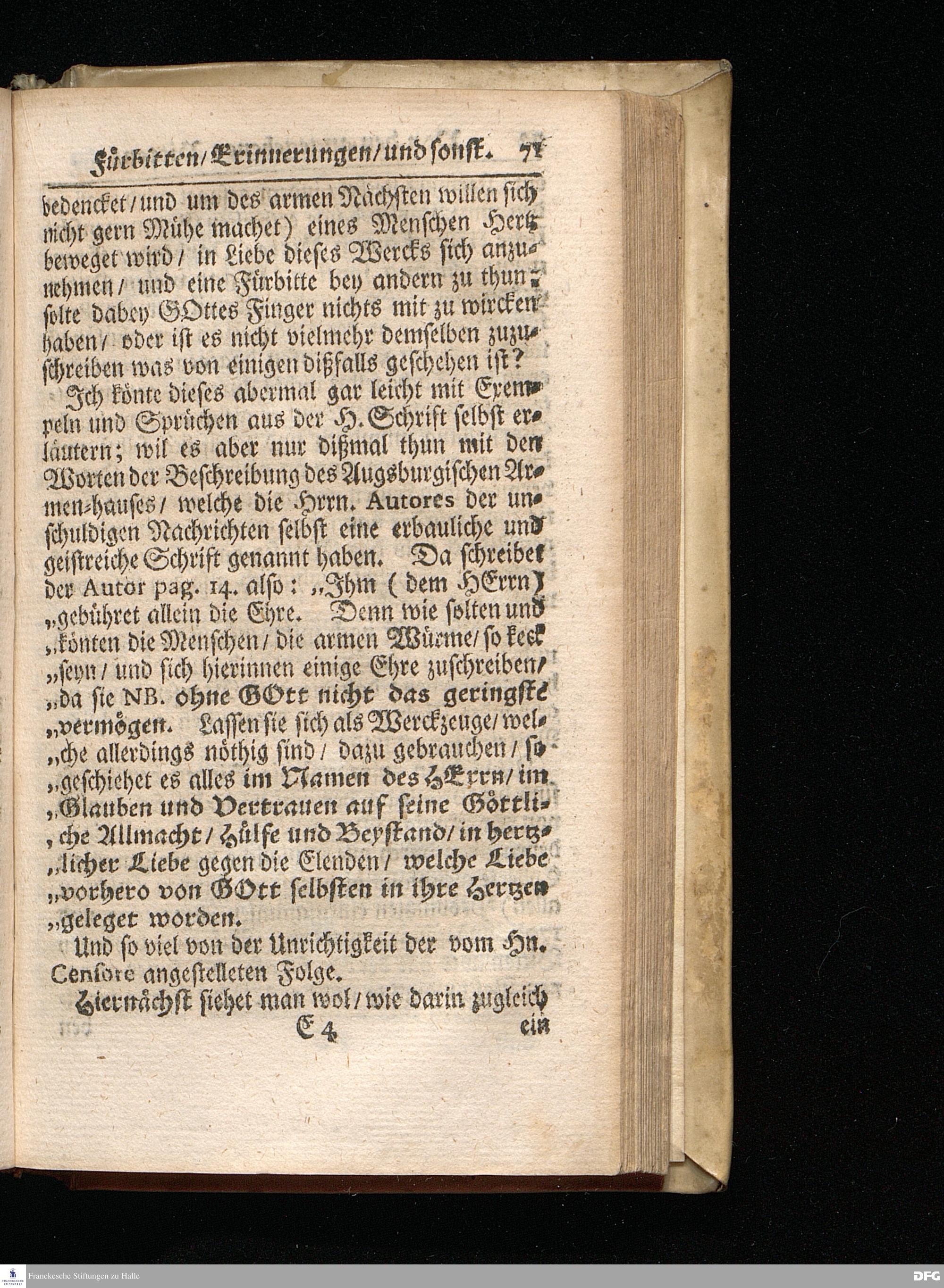 Segens=volle Fußstapfen des noch lebenden und waltenden liebreichen und getreuen GOttes / Zur Beschämung des Unglaubens und Stärckung des Glaubens entdecket durch eine wahrhafte und umständliche Nachricht von dem Wäysen=Hause und übrigen Anstalten zu Glaucha vor Halle: Welche im Jahr 1701. zum Druck befördert; ietzo aber zum dritten mal ediret / und bis auf gegenwärtiges Jahr fortgesetzet von August Herm.Francken / S.Theol.Prof.und Past. Halle / in Verlegung des Wäysen=hauses / MDCCIX.