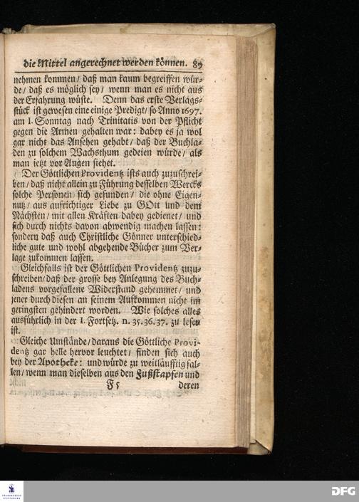 Segens=volle Fußstapfen des noch lebenden und waltenden liebreichen und getreuen GOttes / Zur Beschämung des Unglaubens und Stärckung des Glaubens entdecket durch eine wahrhafte und umständliche Nachricht von dem Wäysen=Hause und übrigen Anstalten zu Glaucha vor Halle: Welche im Jahr 1701. zum Druck befördert; ietzo aber zum dritten mal ediret / und bis auf gegenwärtiges Jahr fortgesetzet von August Herm.Francken / S.Theol.Prof.und Past. Halle / in Verlegung des Wäysen=hauses / MDCCIX.