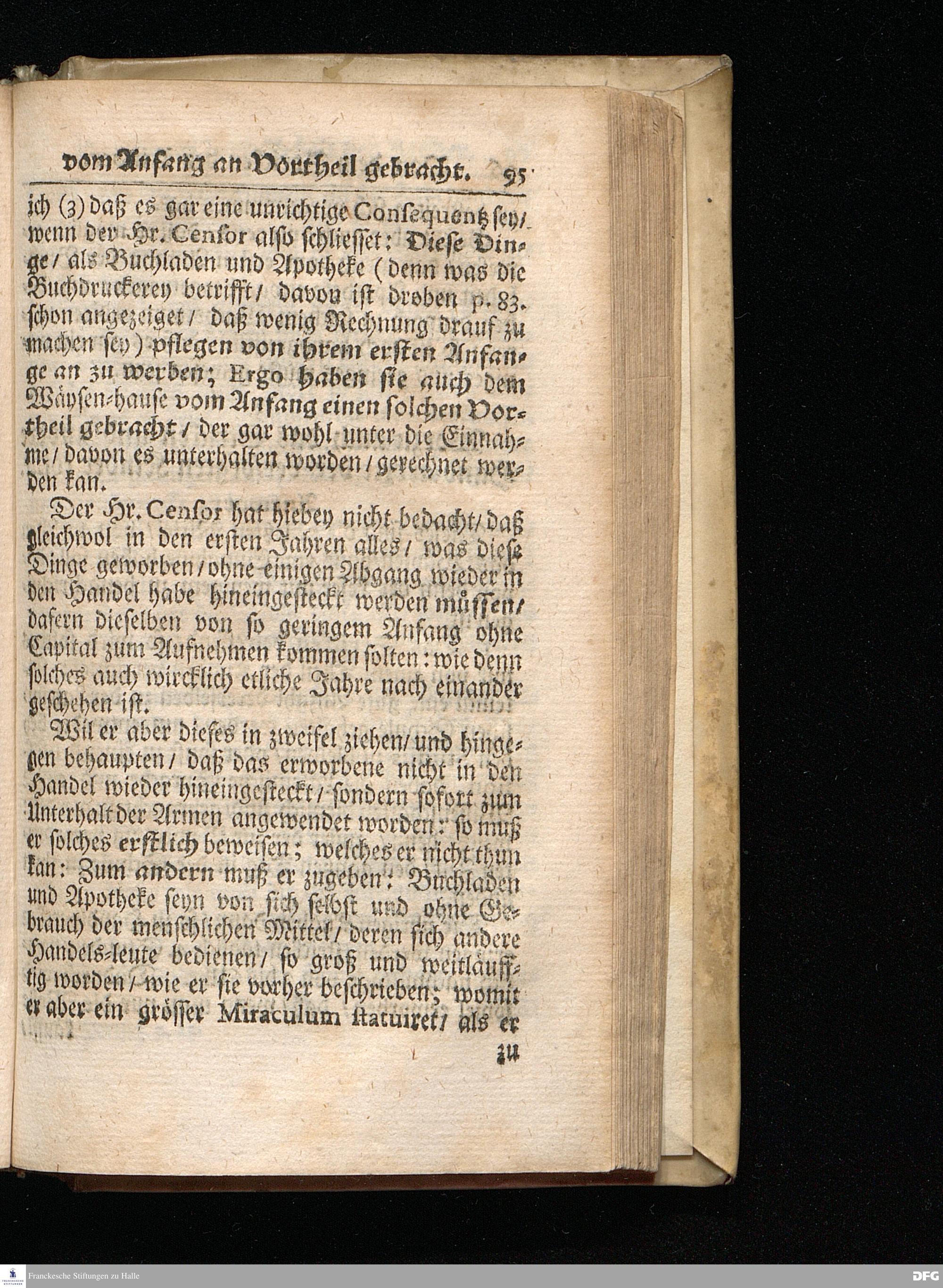 Segens=volle Fußstapfen des noch lebenden und waltenden liebreichen und getreuen GOttes / Zur Beschämung des Unglaubens und Stärckung des Glaubens entdecket durch eine wahrhafte und umständliche Nachricht von dem Wäysen=Hause und übrigen Anstalten zu Glaucha vor Halle: Welche im Jahr 1701. zum Druck befördert; ietzo aber zum dritten mal ediret / und bis auf gegenwärtiges Jahr fortgesetzet von August Herm.Francken / S.Theol.Prof.und Past. Halle / in Verlegung des Wäysen=hauses / MDCCIX.