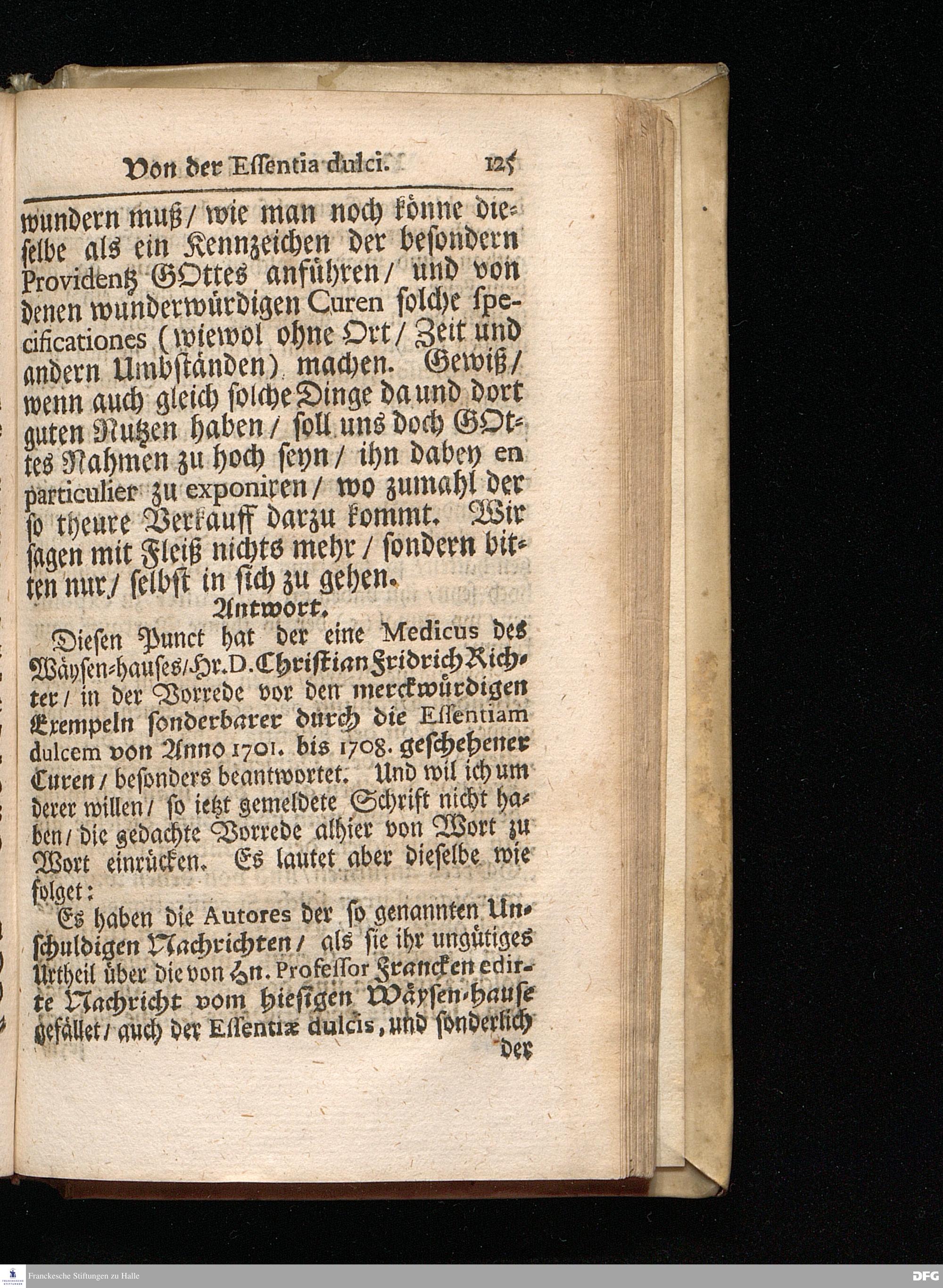 Segens=volle Fußstapfen des noch lebenden und waltenden liebreichen und getreuen GOttes / Zur Beschämung des Unglaubens und Stärckung des Glaubens entdecket durch eine wahrhafte und umständliche Nachricht von dem Wäysen=Hause und übrigen Anstalten zu Glaucha vor Halle: Welche im Jahr 1701. zum Druck befördert; ietzo aber zum dritten mal ediret / und bis auf gegenwärtiges Jahr fortgesetzet von August Herm.Francken / S.Theol.Prof.und Past. Halle / in Verlegung des Wäysen=hauses / MDCCIX.
