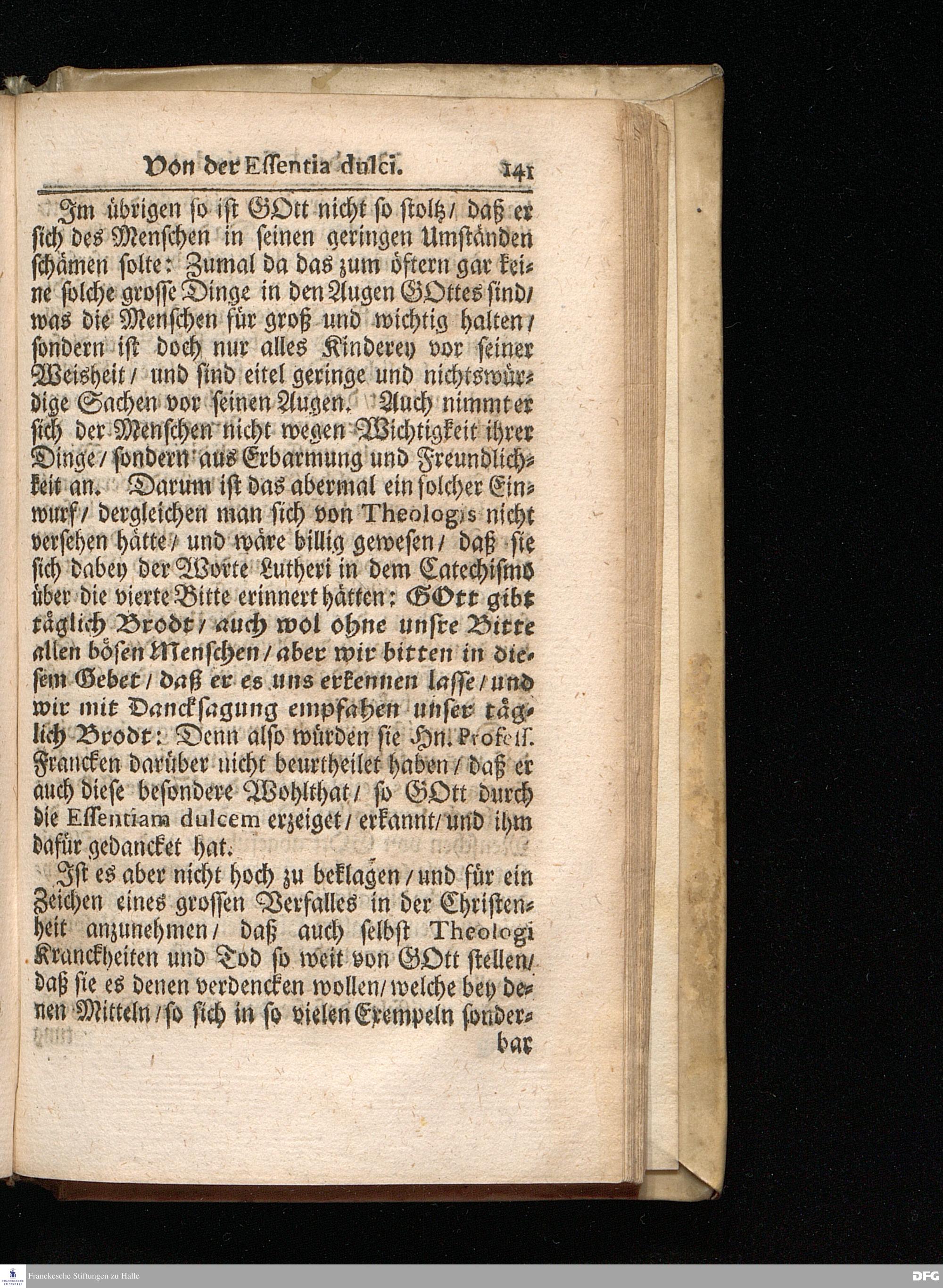 Segens=volle Fußstapfen des noch lebenden und waltenden liebreichen und getreuen GOttes / Zur Beschämung des Unglaubens und Stärckung des Glaubens entdecket durch eine wahrhafte und umständliche Nachricht von dem Wäysen=Hause und übrigen Anstalten zu Glaucha vor Halle: Welche im Jahr 1701. zum Druck befördert; ietzo aber zum dritten mal ediret / und bis auf gegenwärtiges Jahr fortgesetzet von August Herm.Francken / S.Theol.Prof.und Past. Halle / in Verlegung des Wäysen=hauses / MDCCIX.