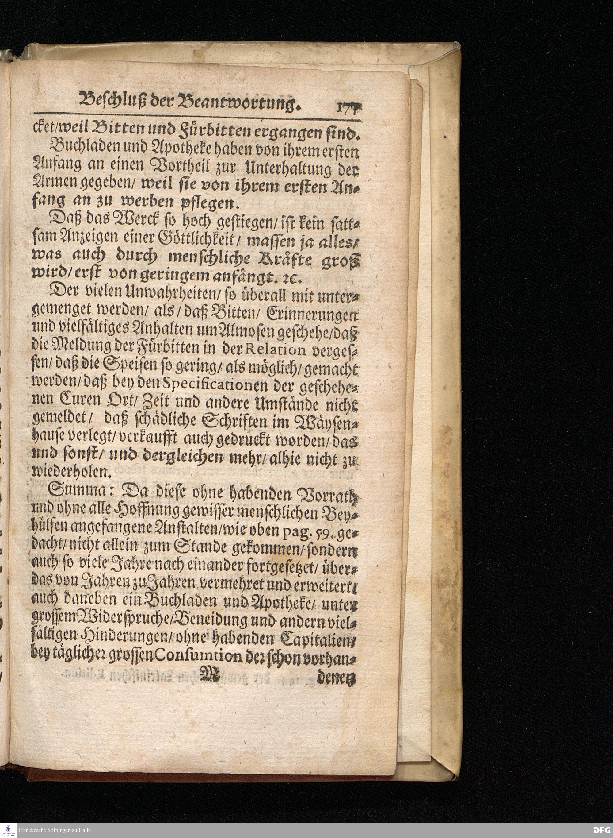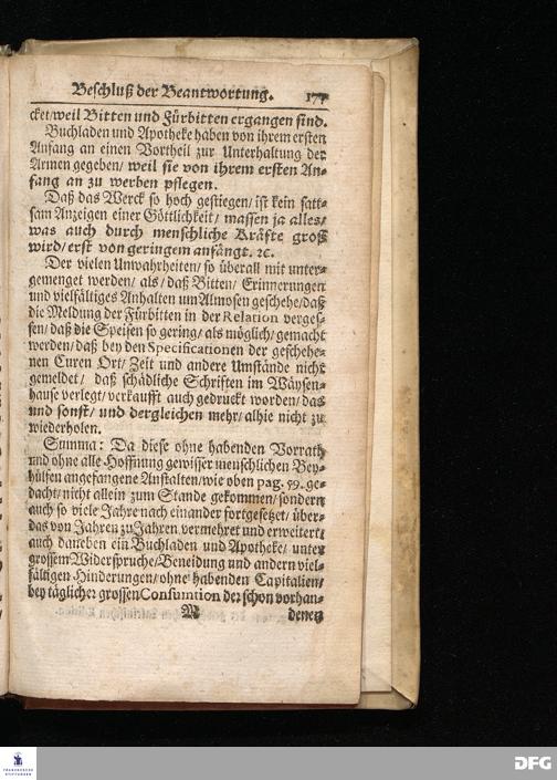 Segens=volle Fußstapfen des noch lebenden und waltenden liebreichen und getreuen GOttes / Zur Beschämung des Unglaubens und Stärckung des Glaubens entdecket durch eine wahrhafte und umständliche Nachricht von dem Wäysen=Hause und übrigen Anstalten zu Glaucha vor Halle: Welche im Jahr 1701. zum Druck befördert; ietzo aber zum dritten mal ediret / und bis auf gegenwärtiges Jahr fortgesetzet von August Herm.Francken / S.Theol.Prof.und Past. Halle / in Verlegung des Wäysen=hauses / MDCCIX.