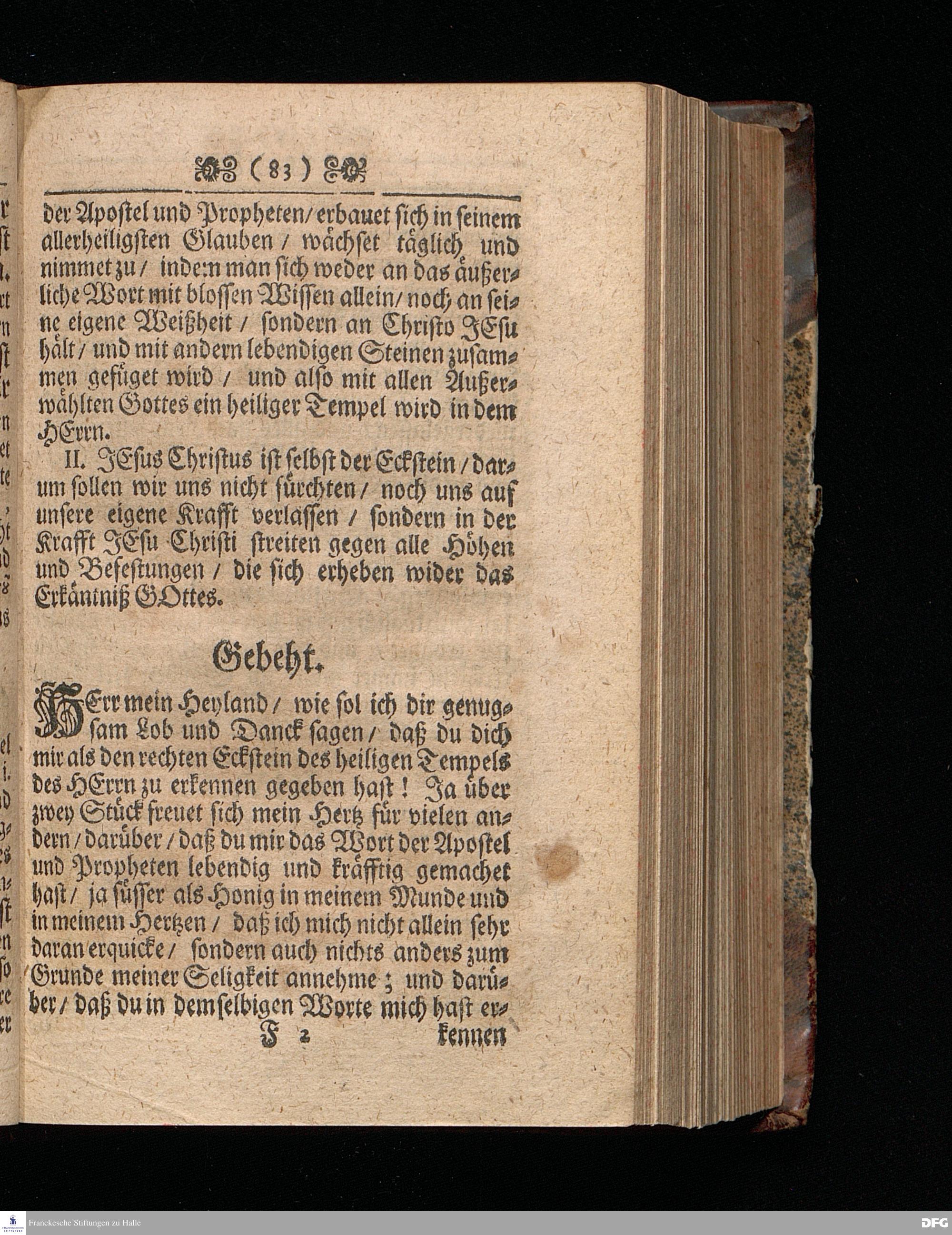 Hrn. M.August Hermann Franckens S.S.Theol.Prof.Publ.& P.Glauch. Außerlesene kleine Schrifften Anweissende Wie ein Gottgelassener Christ Andächtig beten / Die Heilige Schrifft recht verstehen Und Zu seinen Nutzen anwenden soll. Anjetzo mit Fleiß zusamm gesuchet / und denen dürfftigen zum besten in dieses bequeme Format gebracht. Mit beygefügten nöthigen und sehr nützlichen Registern Von einem Liebhaber dieser Schrifften. Franckfurt und Leipzig. Auff Kosten guter Freunde.