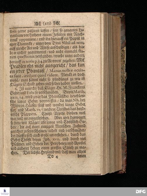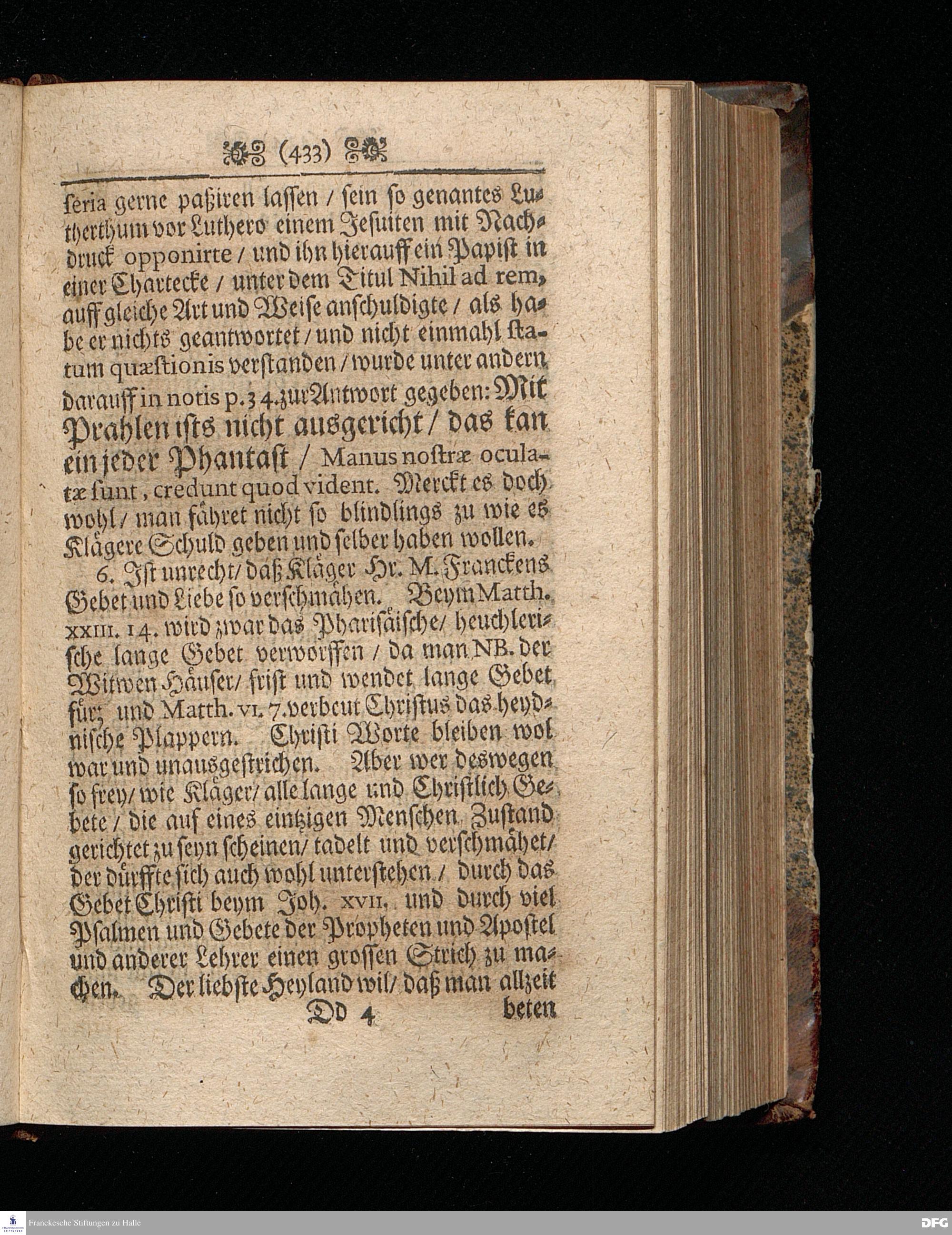 Hrn. M.August Hermann Franckens S.S.Theol.Prof.Publ.& P.Glauch. Außerlesene kleine Schrifften Anweissende Wie ein Gottgelassener Christ Andächtig beten / Die Heilige Schrifft recht verstehen Und Zu seinen Nutzen anwenden soll. Anjetzo mit Fleiß zusamm gesuchet / und denen dürfftigen zum besten in dieses bequeme Format gebracht. Mit beygefügten nöthigen und sehr nützlichen Registern Von einem Liebhaber dieser Schrifften. Franckfurt und Leipzig. Auff Kosten guter Freunde.