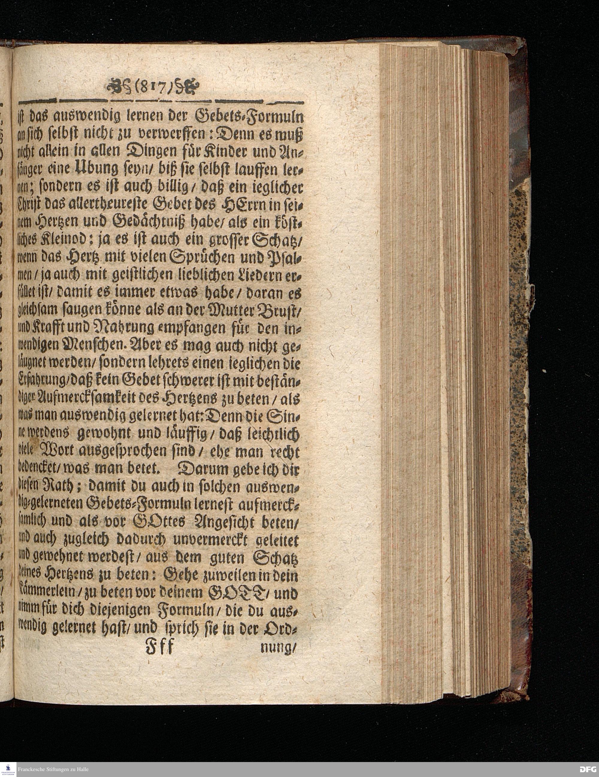 Hrn. M.August Hermann Franckens S.S.Theol.Prof.Publ.& P.Glauch. Außerlesene kleine Schrifften Anweissende Wie ein Gottgelassener Christ Andächtig beten / Die Heilige Schrifft recht verstehen Und Zu seinen Nutzen anwenden soll. Anjetzo mit Fleiß zusamm gesuchet / und denen dürfftigen zum besten in dieses bequeme Format gebracht. Mit beygefügten nöthigen und sehr nützlichen Registern Von einem Liebhaber dieser Schrifften. Franckfurt und Leipzig. Auff Kosten guter Freunde.
