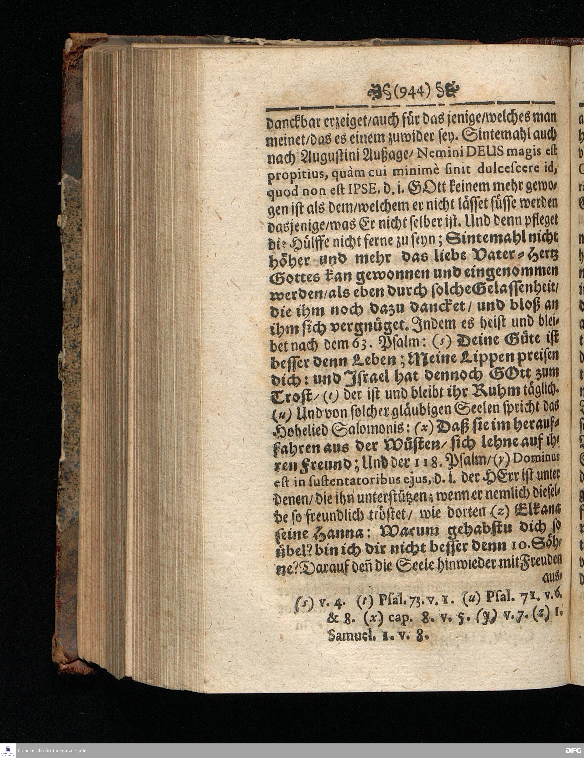 Hrn. M.August Hermann Franckens S.S.Theol.Prof.Publ.& P.Glauch. Außerlesene kleine Schrifften Anweissende Wie ein Gottgelassener Christ Andächtig beten / Die Heilige Schrifft recht verstehen Und Zu seinen Nutzen anwenden soll. Anjetzo mit Fleiß zusamm gesuchet / und denen dürfftigen zum besten in dieses bequeme Format gebracht. Mit beygefügten nöthigen und sehr nützlichen Registern Von einem Liebhaber dieser Schrifften. Franckfurt und Leipzig. Auff Kosten guter Freunde.