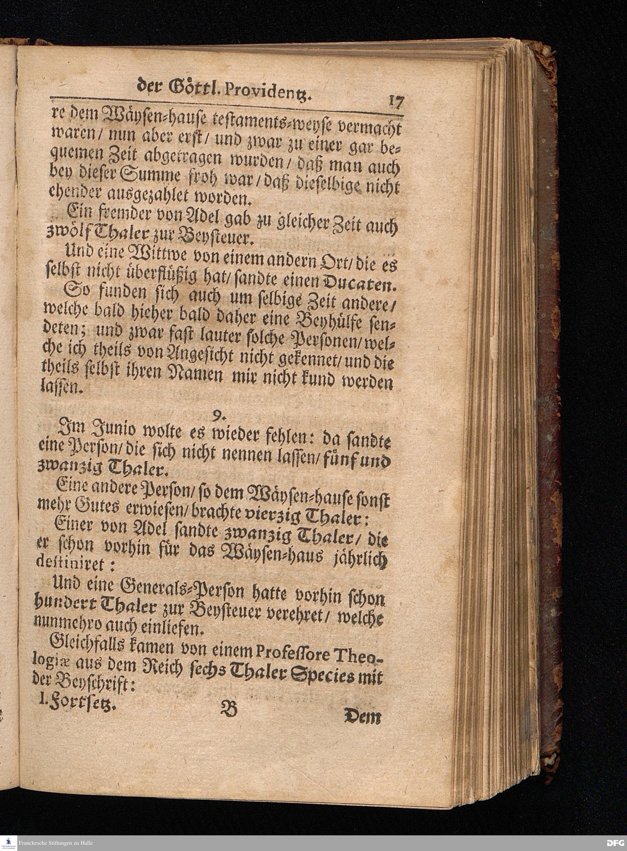 Segens=volle Fußstapfen des noch lebenden und waltenden liebreichen und getreuen GOttes / Zur Beschämung des Unglaubens und Stärckung des Glaubens entdecket durch eine wahrhafte und umständliche Nachricht von dem Wäysen=Hause und übrigen Anstalten zu Glaucha vor Halle: Welche im Jahr 1701. zum Druck befördert; ietzo aber zum dritten mal ediret / und bis auf gegenwärtiges Jahr fortgesetzet von August.Herm.Francken / S.Theol.Prof.und Past. Halle / in Verlegung des Wäysen=hauses / MDCCIX.
