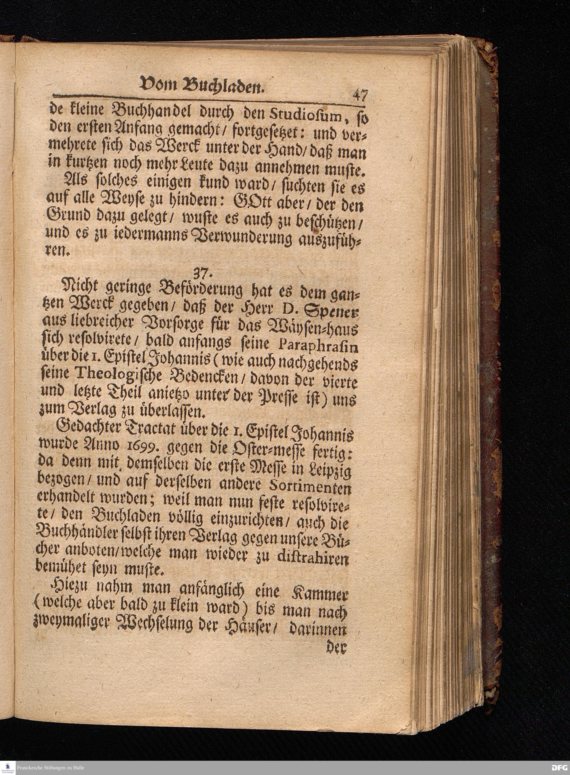 Segens=volle Fußstapfen des noch lebenden und waltenden liebreichen und getreuen GOttes / Zur Beschämung des Unglaubens und Stärckung des Glaubens entdecket durch eine wahrhafte und umständliche Nachricht von dem Wäysen=Hause und übrigen Anstalten zu Glaucha vor Halle: Welche im Jahr 1701. zum Druck befördert; ietzo aber zum dritten mal ediret / und bis auf gegenwärtiges Jahr fortgesetzet von August.Herm.Francken / S.Theol.Prof.und Past. Halle / in Verlegung des Wäysen=hauses / MDCCIX.