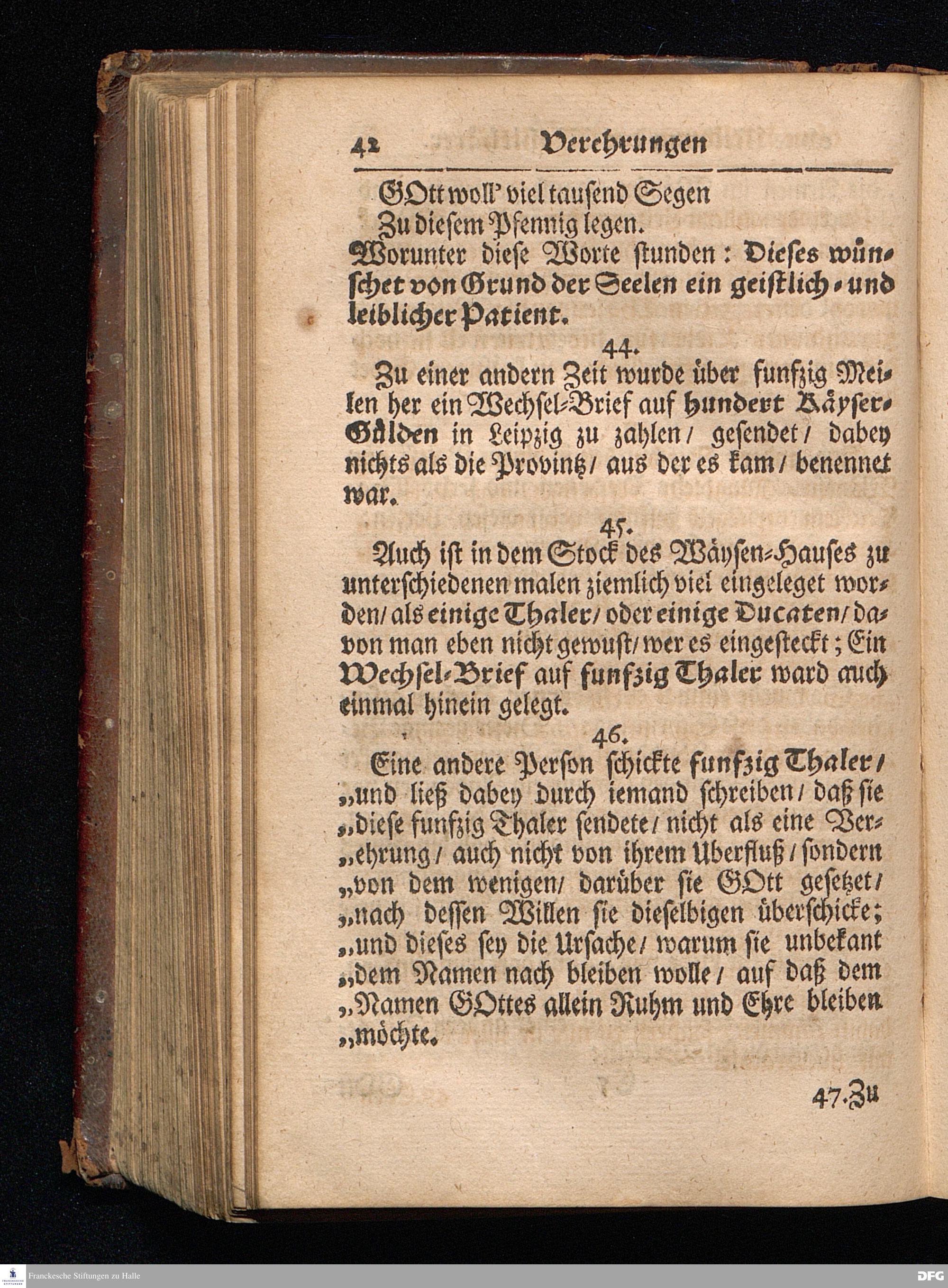 Segens=volle Fußstapfen des noch lebenden und waltenden liebreichen und getreuen GOttes / Zur Beschämung des Unglaubens und Stärckung des Glaubens entdecket durch eine wahrhafte und umständliche Nachricht von dem Wäysen=Hause und übrigen Anstalten zu Glaucha vor Halle: Welche im Jahr 1701. zum Druck befördert; ietzo aber zum dritten mal ediret / und bis auf gegenwärtiges Jahr fortgesetzet von August.Herm.Francken / S.Theol.Prof.und Past. Halle / in Verlegung des Wäysen=hauses / MDCCIX.