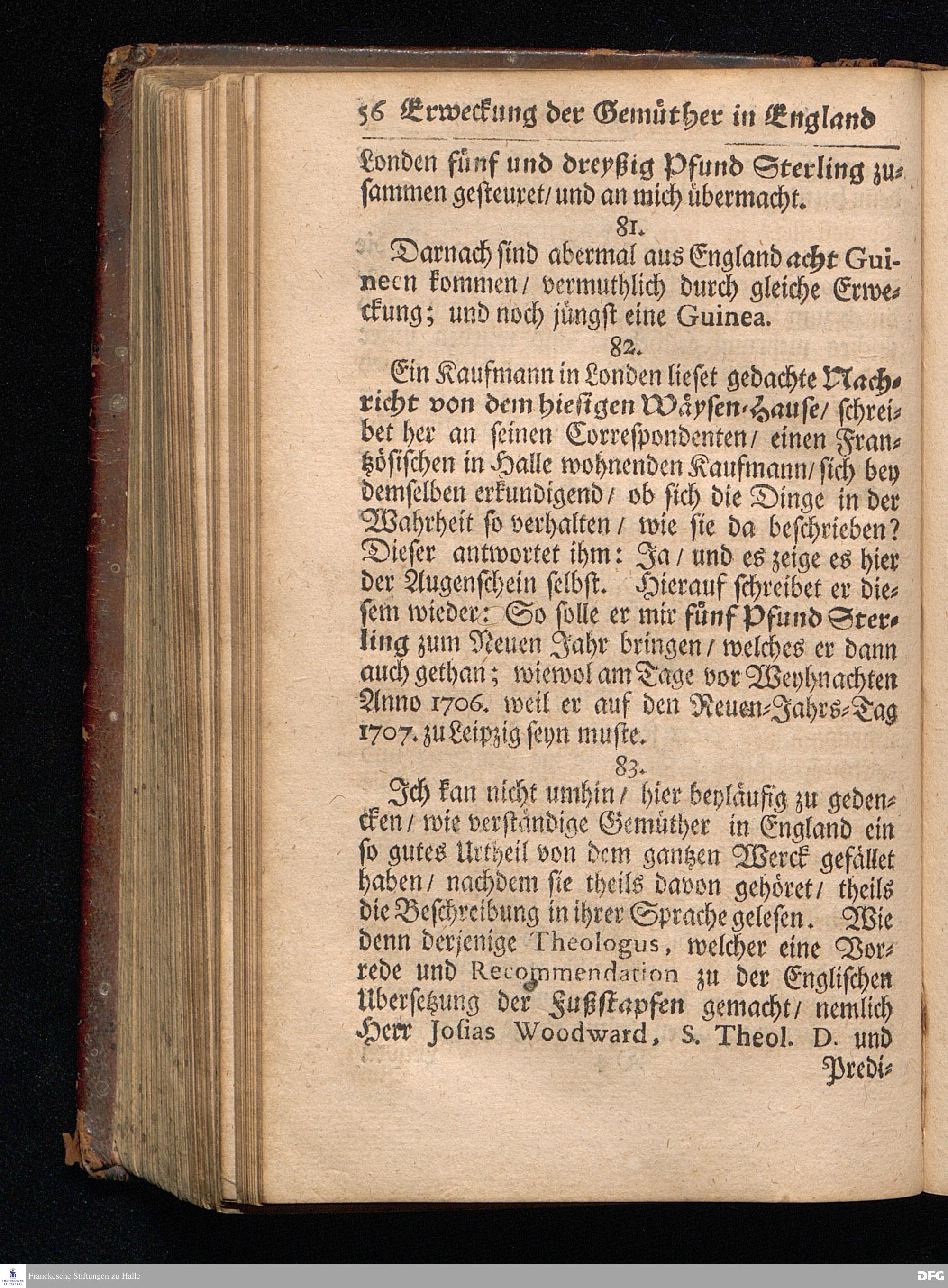 Segens=volle Fußstapfen des noch lebenden und waltenden liebreichen und getreuen GOttes / Zur Beschämung des Unglaubens und Stärckung des Glaubens entdecket durch eine wahrhafte und umständliche Nachricht von dem Wäysen=Hause und übrigen Anstalten zu Glaucha vor Halle: Welche im Jahr 1701. zum Druck befördert; ietzo aber zum dritten mal ediret / und bis auf gegenwärtiges Jahr fortgesetzet von August.Herm.Francken / S.Theol.Prof.und Past. Halle / in Verlegung des Wäysen=hauses / MDCCIX.