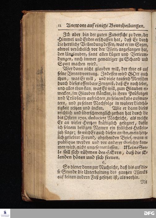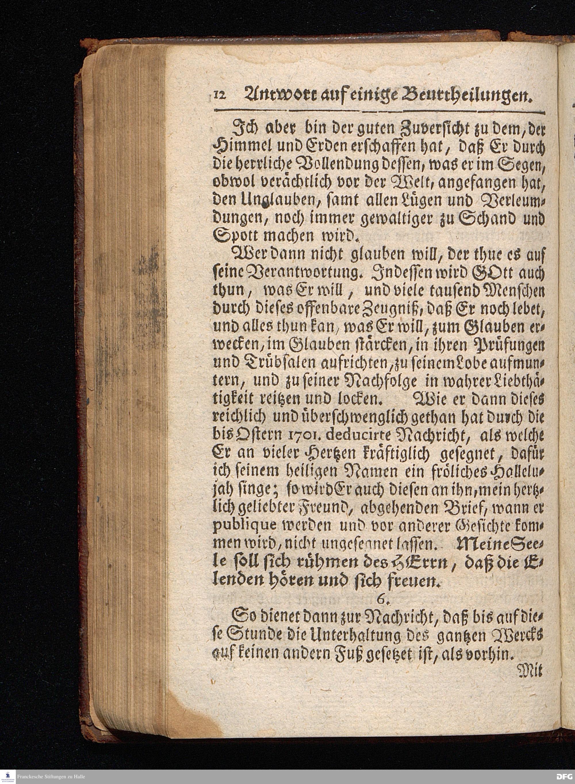 Segens=volle Fußstapfen des noch lebenden und waltenden liebrei=│chen und getreuen GOttes, Zur Beschämung des Unglaubens und Stärckung des Glaubens, entdecket durch eine wahrhafte und umständliche Nachricht von dem Wäysen=Hause und übrigen Anstalten zu Glaucha vor Halle; Welche Im Jahr 1701. zum Druck befördert, ietzo aber zum dritten mal ediret, und bis auf gegenwärtiges Jahr fortgesetzet von August Hermann Francken, S.Theol.Prof.und Past. HALLE, in Verlegung des Wäysen=Hauses, MDCCIX.