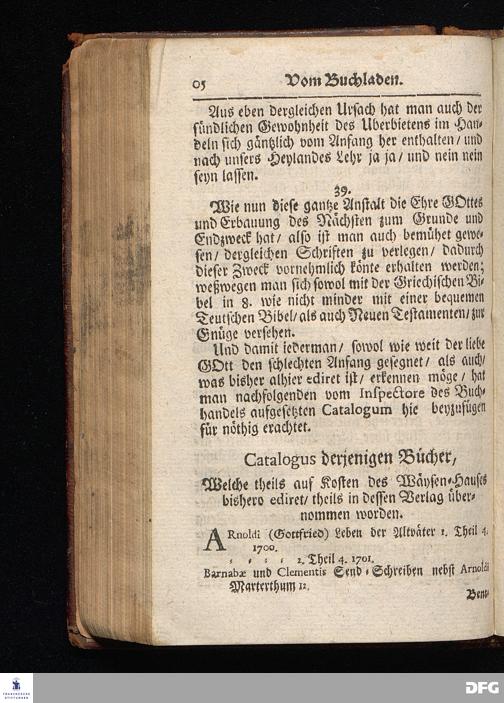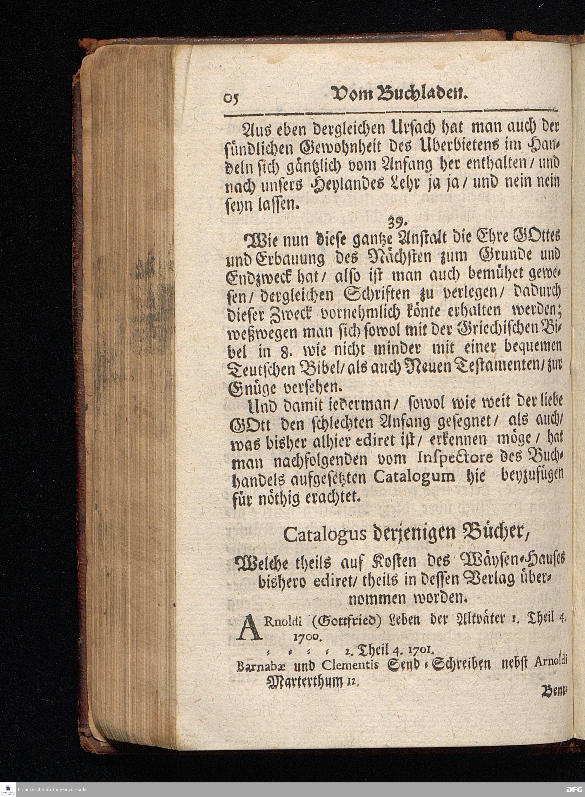 Segens=volle Fußstapfen des noch lebenden und waltenden liebrei=│chen und getreuen GOttes, Zur Beschämung des Unglaubens und Stärckung des Glaubens, entdecket durch eine wahrhafte und umständliche Nachricht von dem Wäysen=Hause und übrigen Anstalten zu Glaucha vor Halle; Welche Im Jahr 1701. zum Druck befördert, ietzo aber zum dritten mal ediret, und bis auf gegenwärtiges Jahr fortgesetzet von August Hermann Francken, S.Theol.Prof.und Past. HALLE, in Verlegung des Wäysen=Hauses, MDCCIX.