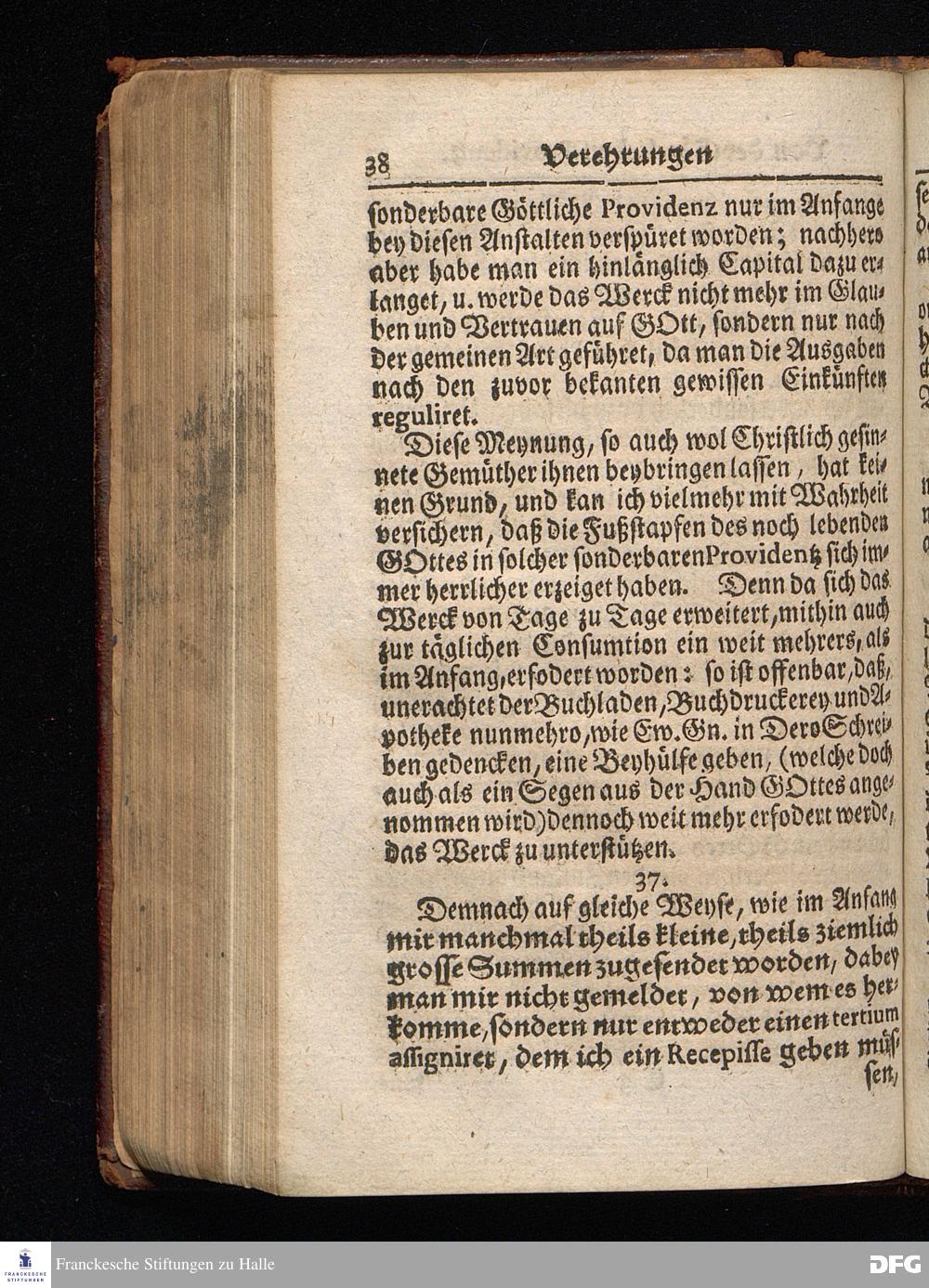 Segens=volle Fußstapfen des noch lebenden und waltenden liebrei=│chen und getreuen GOttes, Zur Beschämung des Unglaubens und Stärckung des Glaubens, entdecket durch eine wahrhafte und umständliche Nachricht von dem Wäysen=Hause und übrigen Anstalten zu Glaucha vor Halle; Welche Im Jahr 1701. zum Druck befördert, ietzo aber zum dritten mal ediret, und bis auf gegenwärtiges Jahr fortgesetzet von August Hermann Francken, S.Theol.Prof.und Past. HALLE, in Verlegung des Wäysen=Hauses, MDCCIX.