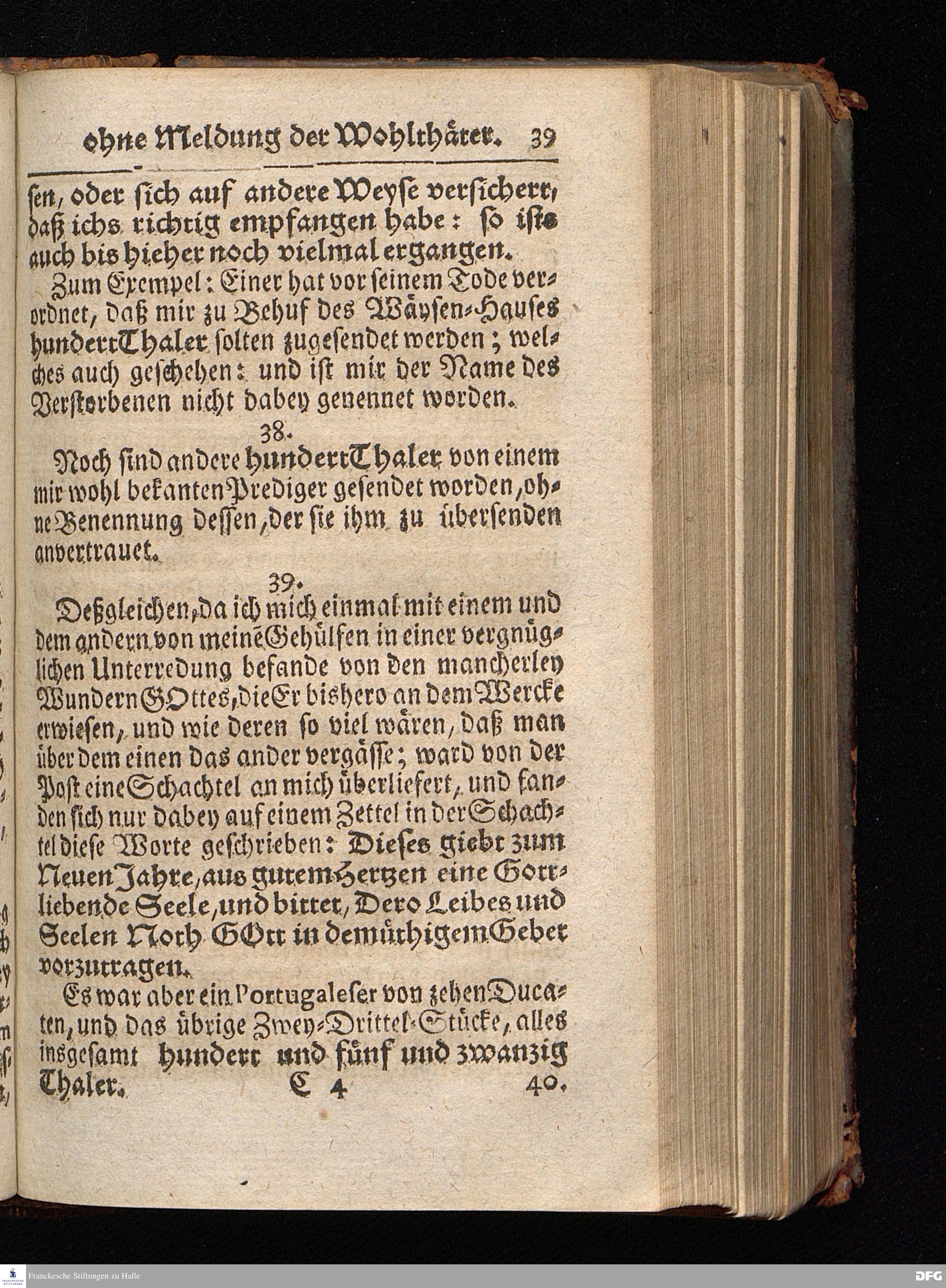 Segens=volle Fußstapfen des noch lebenden und waltenden liebrei=│chen und getreuen GOttes, Zur Beschämung des Unglaubens und Stärckung des Glaubens, entdecket durch eine wahrhafte und umständliche Nachricht von dem Wäysen=Hause und übrigen Anstalten zu Glaucha vor Halle; Welche Im Jahr 1701. zum Druck befördert, ietzo aber zum dritten mal ediret, und bis auf gegenwärtiges Jahr fortgesetzet von August Hermann Francken, S.Theol.Prof.und Past. HALLE, in Verlegung des Wäysen=Hauses, MDCCIX.