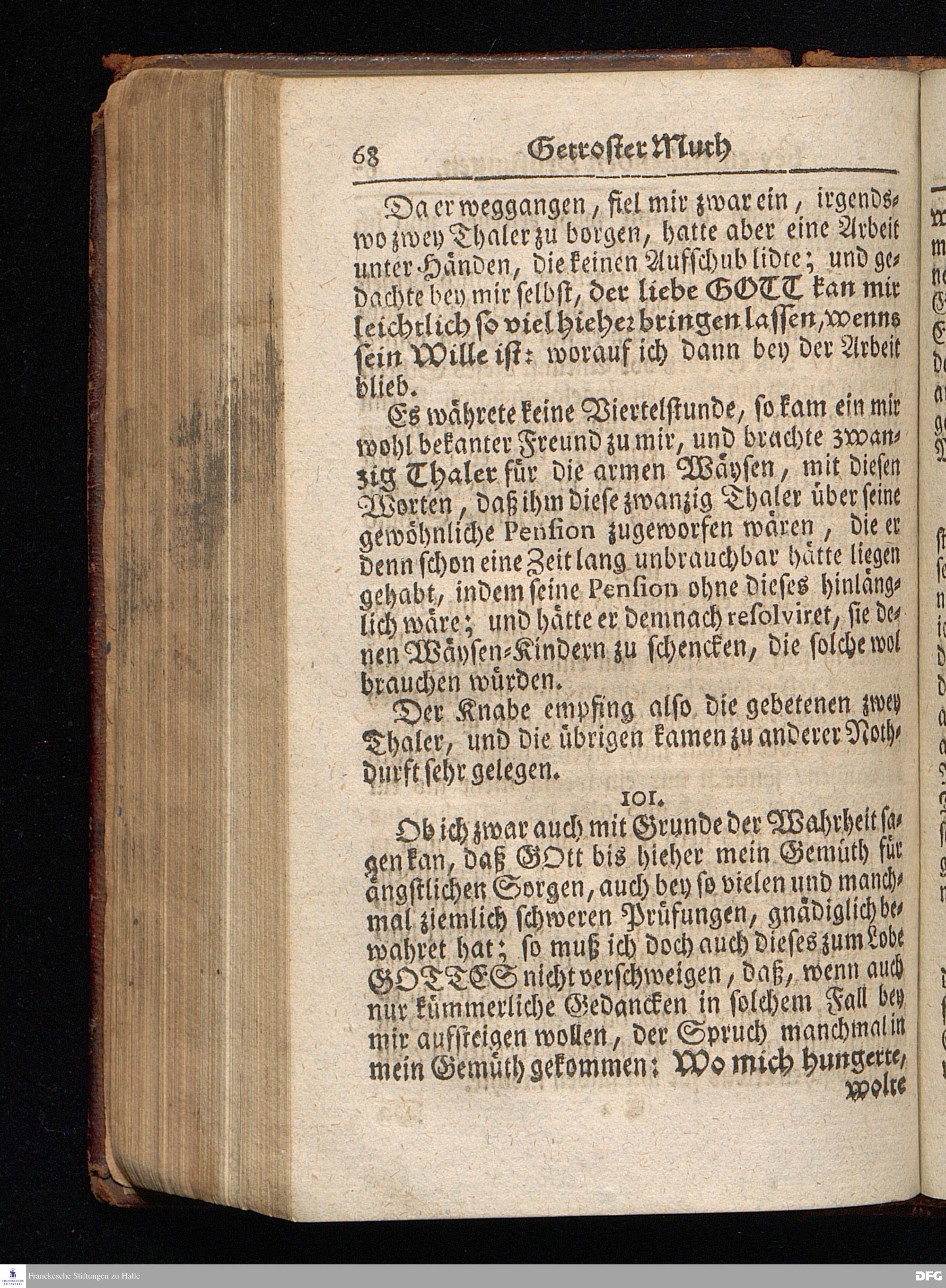 Segens=volle Fußstapfen des noch lebenden und waltenden liebrei=│chen und getreuen GOttes, Zur Beschämung des Unglaubens und Stärckung des Glaubens, entdecket durch eine wahrhafte und umständliche Nachricht von dem Wäysen=Hause und übrigen Anstalten zu Glaucha vor Halle; Welche Im Jahr 1701. zum Druck befördert, ietzo aber zum dritten mal ediret, und bis auf gegenwärtiges Jahr fortgesetzet von August Hermann Francken, S.Theol.Prof.und Past. HALLE, in Verlegung des Wäysen=Hauses, MDCCIX.