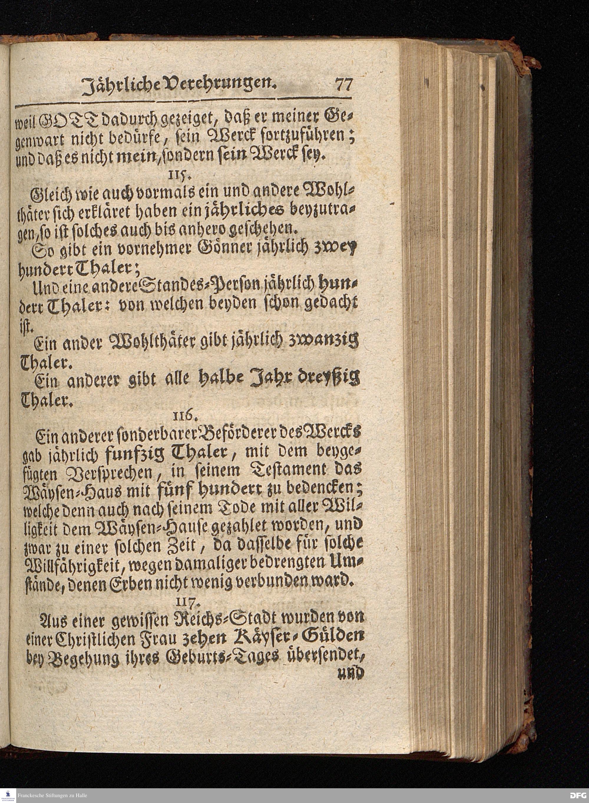 Segens=volle Fußstapfen des noch lebenden und waltenden liebrei=│chen und getreuen GOttes, Zur Beschämung des Unglaubens und Stärckung des Glaubens, entdecket durch eine wahrhafte und umständliche Nachricht von dem Wäysen=Hause und übrigen Anstalten zu Glaucha vor Halle; Welche Im Jahr 1701. zum Druck befördert, ietzo aber zum dritten mal ediret, und bis auf gegenwärtiges Jahr fortgesetzet von August Hermann Francken, S.Theol.Prof.und Past. HALLE, in Verlegung des Wäysen=Hauses, MDCCIX.