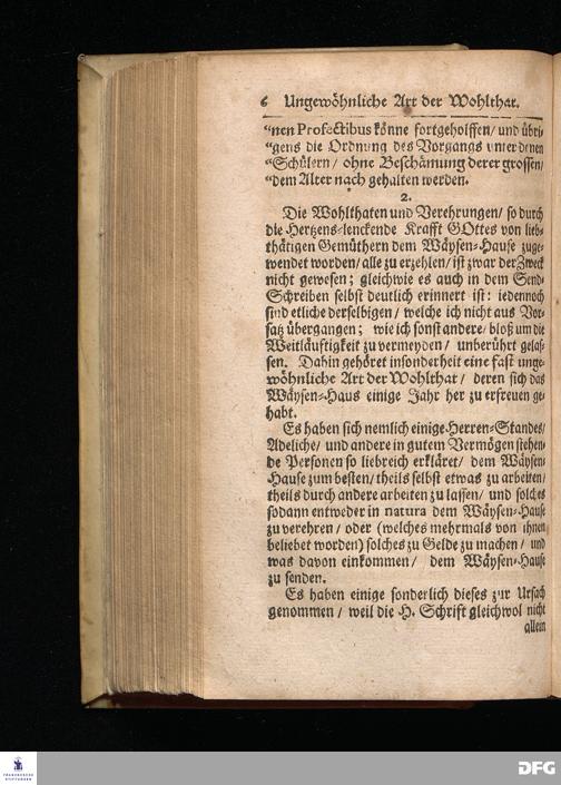 Segens=volle Fußstapfen des noch lebenden und waltenden liebreichen und getreuen GOttes / Zur Beschämung des Unglaubens und Stärckung des Glaubens entdecket durch eine wahrhafte und umständliche Nachricht von dem Wäysen=Hause und übrigen Anstalten zu Glaucha vor Halle: Welche im Jahr 1701. zum Druck befördert; ietzo aber zum dritten mal ediret / und bis auf gegenwärtiges Jahr fortgesetzet von August Herm.Francken / S.Theol.Prof.und Past. Halle / in Verlegung des Wäysen=hauses / MDCCIX.