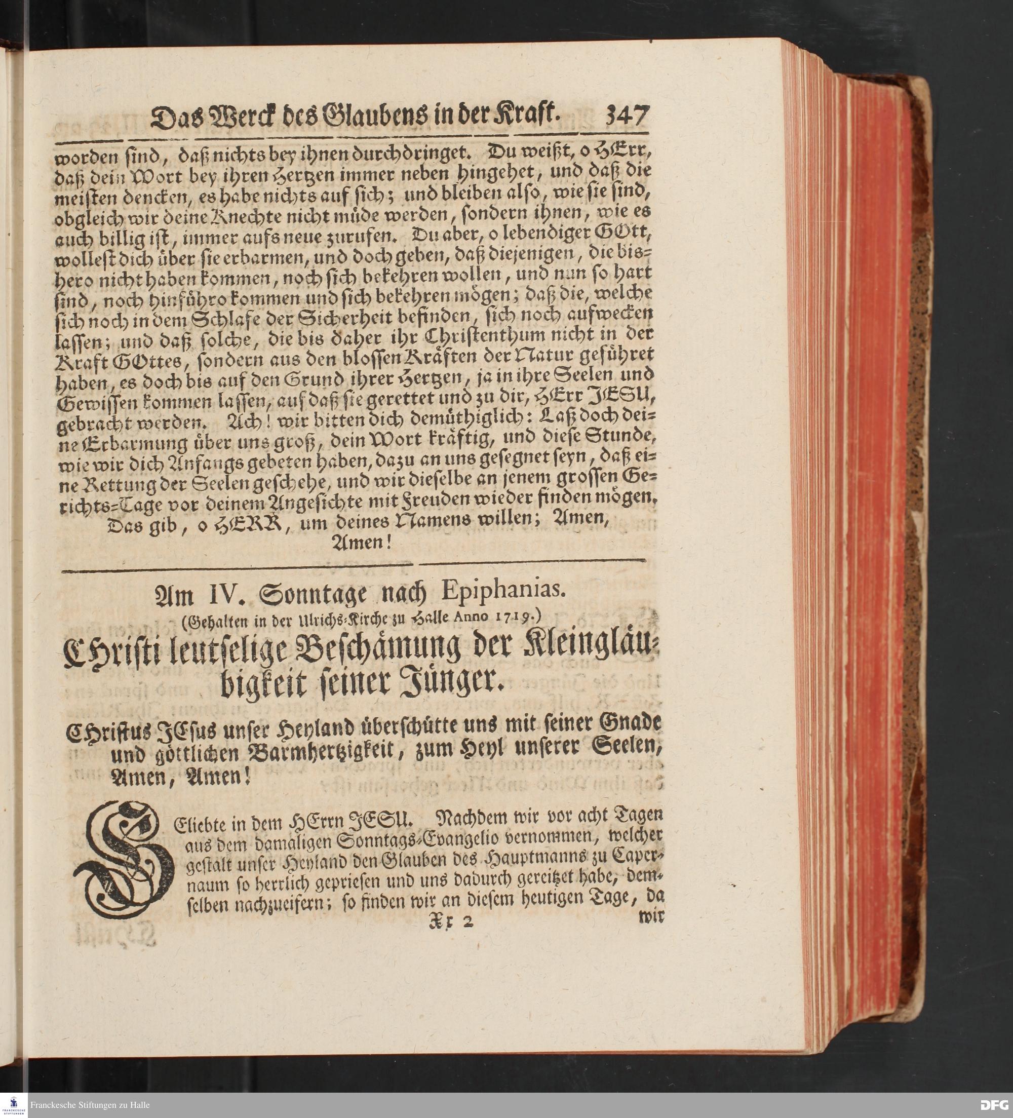 August Hermann Franckens, S.Theol.Prof.und Past. Sonn= und Fest=Tags=Predigten / Welche Theils in Halle, theils an verschiedenen auswärtigen Oertern, von wichtigen und auserlesenen Materien gehalten worden, Nebst Vorbereitung auf die hohen Feste und nützlichen Registern. Dritte Auflage. HALLE, gedruckt und verlegt im Wäysen=Hause MDCCXL. Mit Königl.Preuß.und Churfl.Brandenb.Privileg.