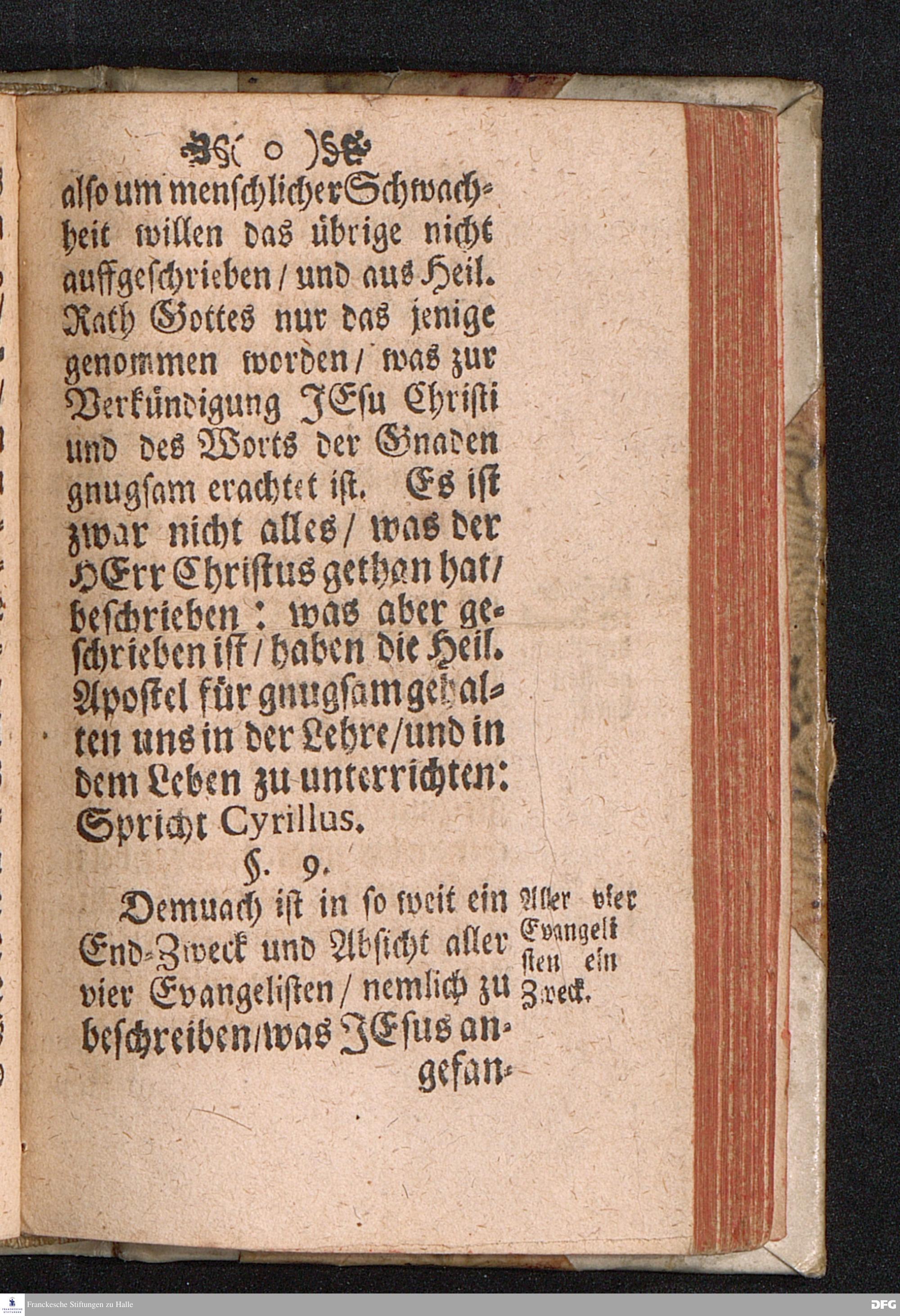 M. Aug. Hermann Franckens Gr.& Or.Lingg.P.P. & P.Glauch. Einleitung Zur Lesung Der H. Schrifft / Insonderheit Des Neuen Testaments. I. Für Ungelehrte u.Einfältige. II.Für Studiosos Theologiæ. III.Für Catechisirende. Darinnen Der Zweck und Inhalt der gantzen H.Schrifft / Fürnemlich aller und jeden Bücher Neues Testaments / und wie derselbe zur rechten Gründung in der Christlichen Lehre und Gottseligkeit anzuwenden sey / deutlich gezeiget wird. Halle / Gedruckt bey Christoph Salfelden. 1694.
