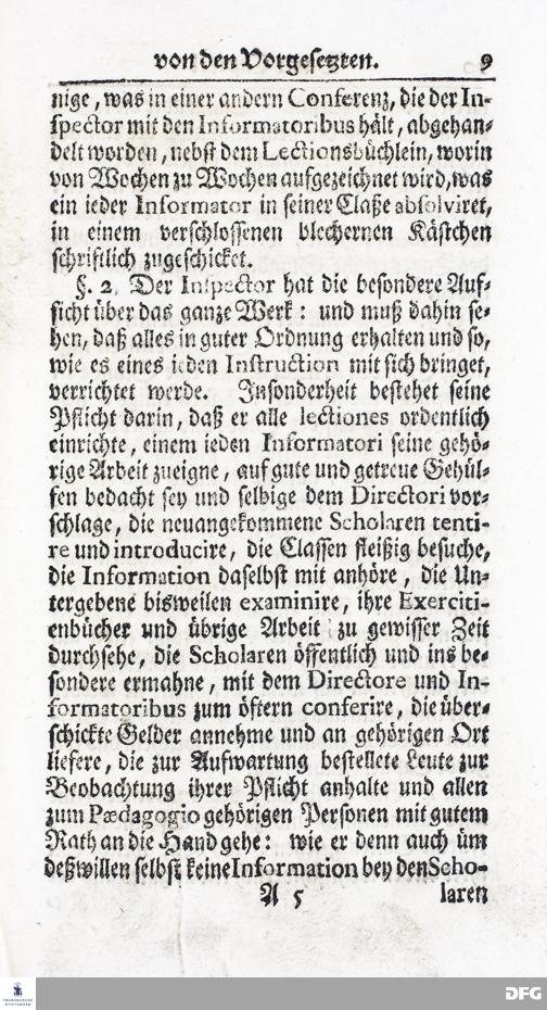 Kurzer Bericht Von der Gegenwärtigen Verfassung Des PAEDAGOGII REGII Zu Glaucha vor Halle / Aus der vormals schon edirten, nunmehro aber in vielen Stücken nach und nach verbesserten Ordnung und Lehrart herausgezogen. HALLE, Zu finden im Wäisenhause, MDCCXIV.