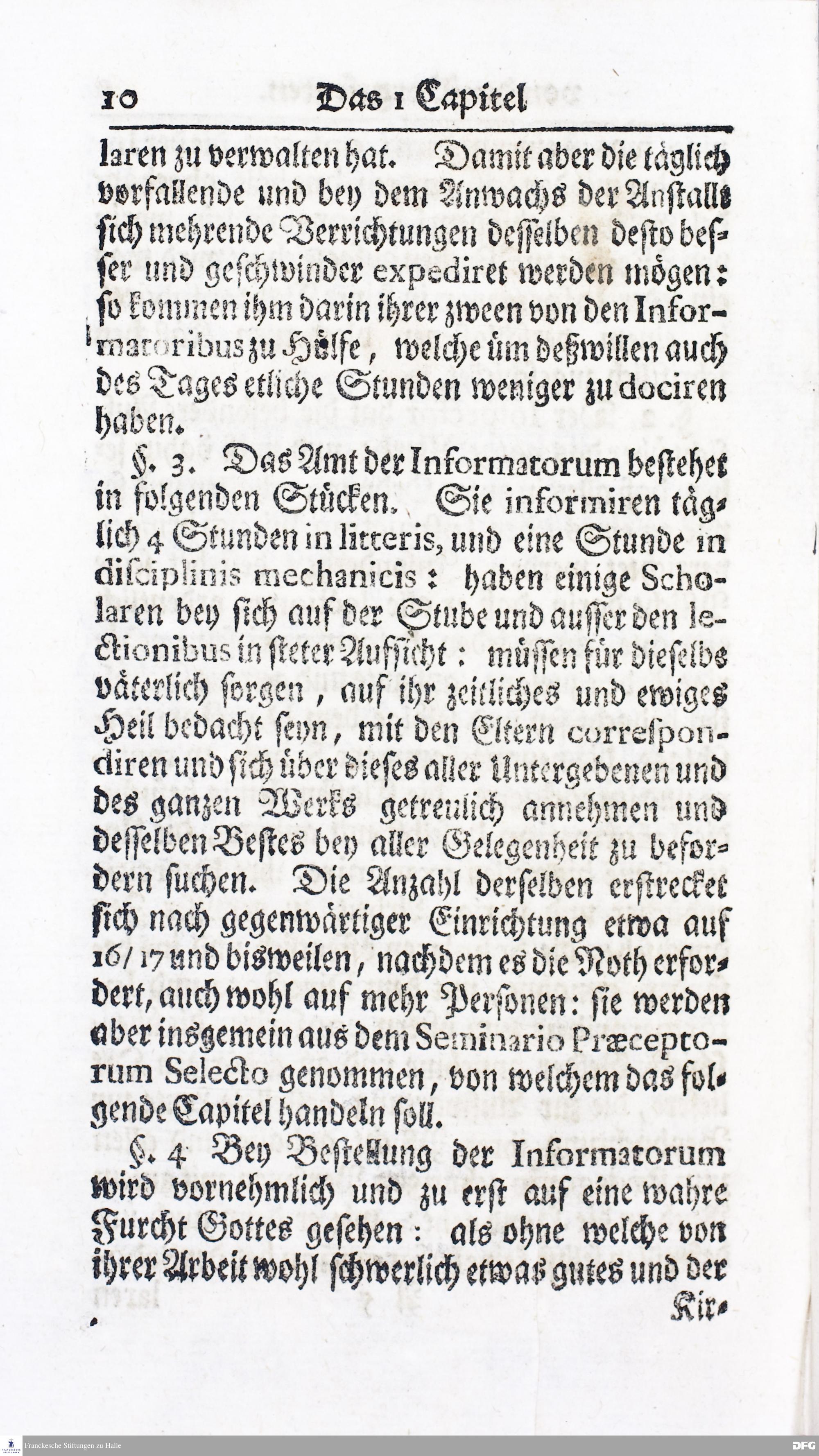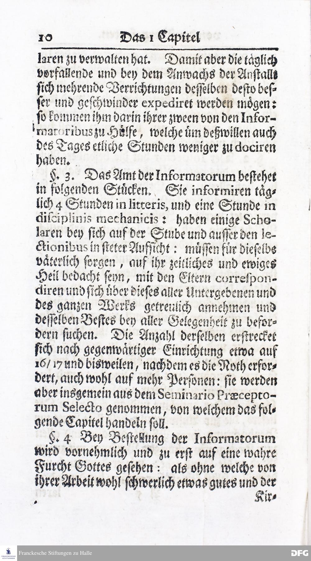 Kurzer Bericht Von der Gegenwärtigen Verfassung Des PAEDAGOGII REGII Zu Glaucha vor Halle / Aus der vormals schon edirten, nunmehro aber in vielen Stücken nach und nach verbesserten Ordnung und Lehrart herausgezogen. HALLE, Zu finden im Wäisenhause, MDCCXIV.