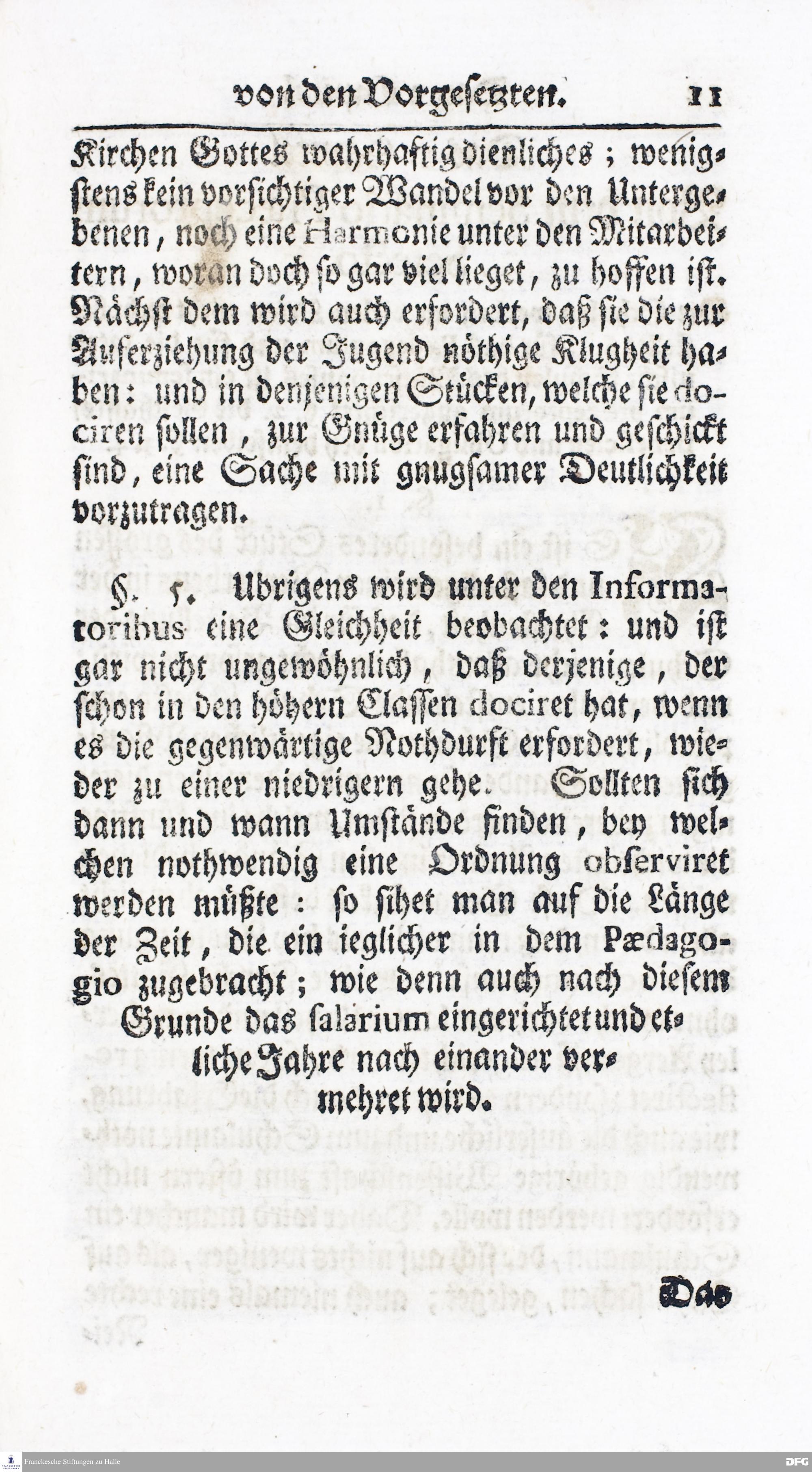 Kurzer Bericht Von der Gegenwärtigen Verfassung Des PAEDAGOGII REGII Zu Glaucha vor Halle / Aus der vormals schon edirten, nunmehro aber in vielen Stücken nach und nach verbesserten Ordnung und Lehrart herausgezogen. HALLE, Zu finden im Wäisenhause, MDCCXIV.