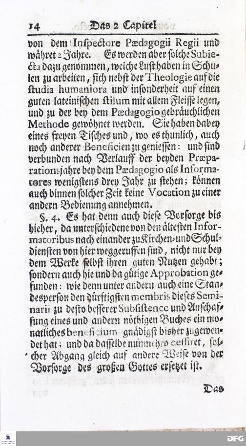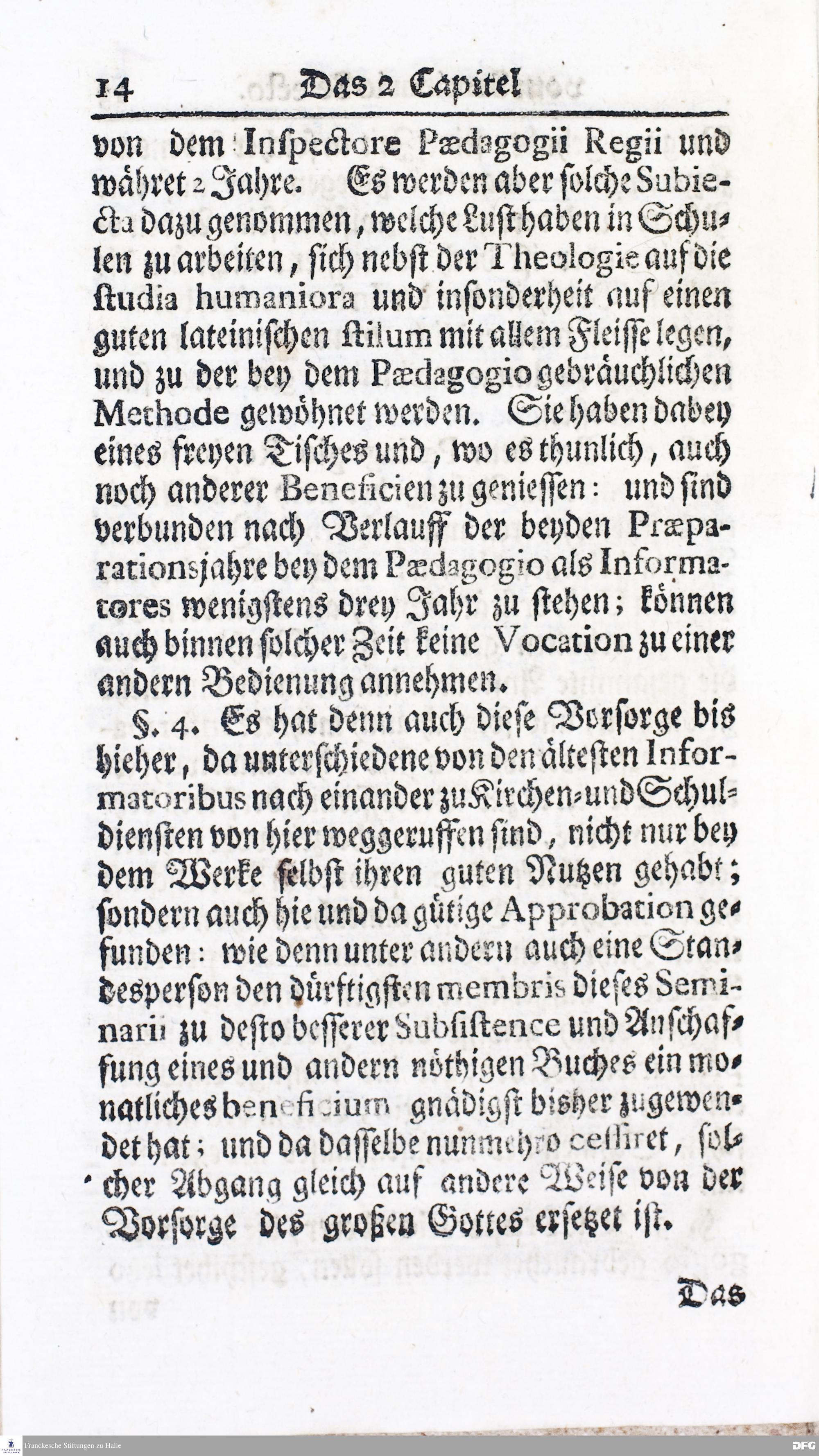 Kurzer Bericht Von der Gegenwärtigen Verfassung Des PAEDAGOGII REGII Zu Glaucha vor Halle / Aus der vormals schon edirten, nunmehro aber in vielen Stücken nach und nach verbesserten Ordnung und Lehrart herausgezogen. HALLE, Zu finden im Wäisenhause, MDCCXIV.