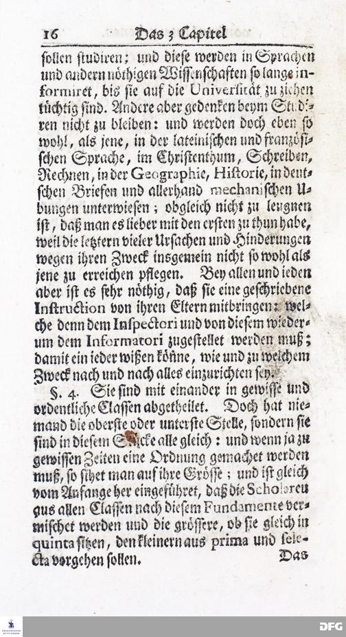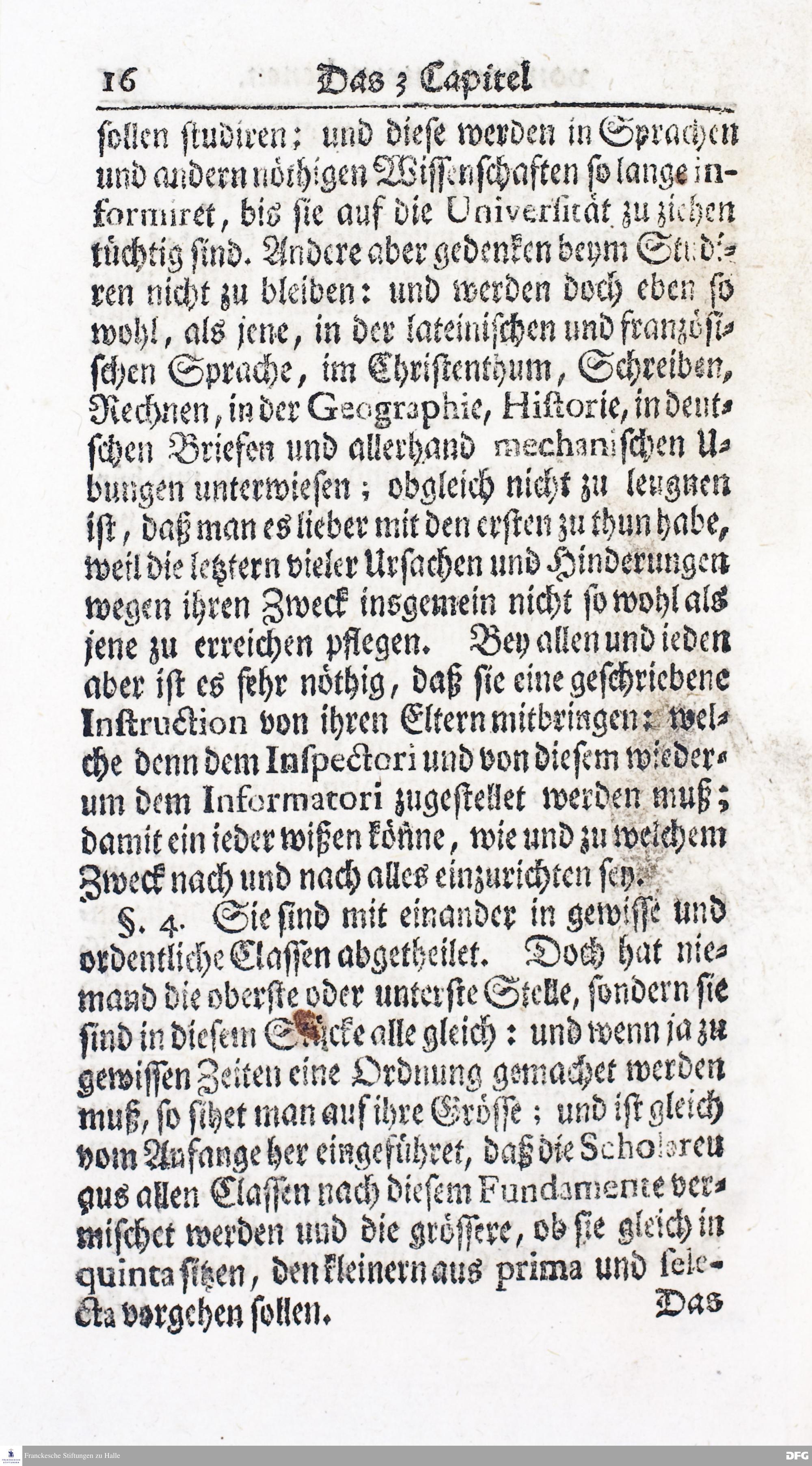 Kurzer Bericht Von der Gegenwärtigen Verfassung Des PAEDAGOGII REGII Zu Glaucha vor Halle / Aus der vormals schon edirten, nunmehro aber in vielen Stücken nach und nach verbesserten Ordnung und Lehrart herausgezogen. HALLE, Zu finden im Wäisenhause, MDCCXIV.