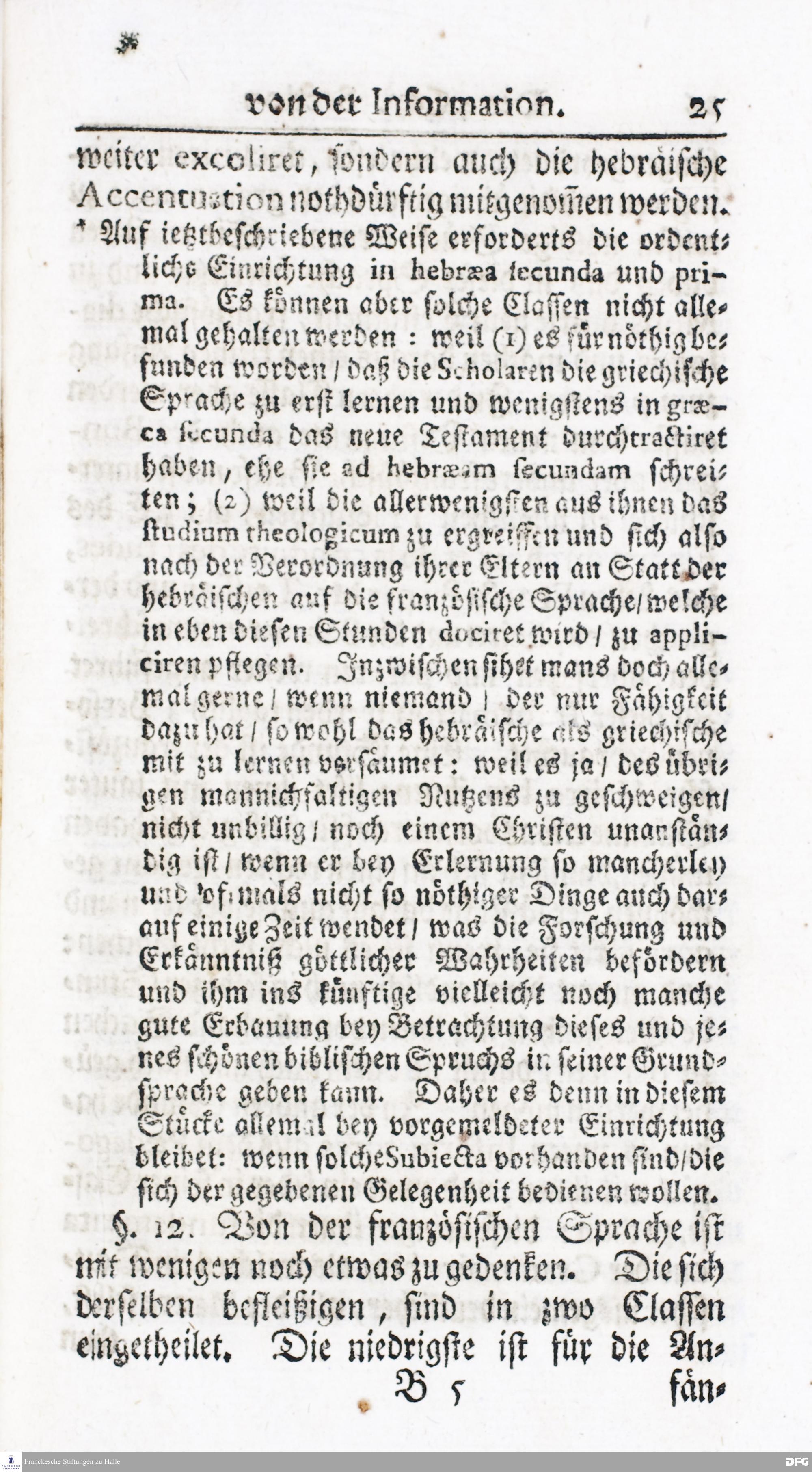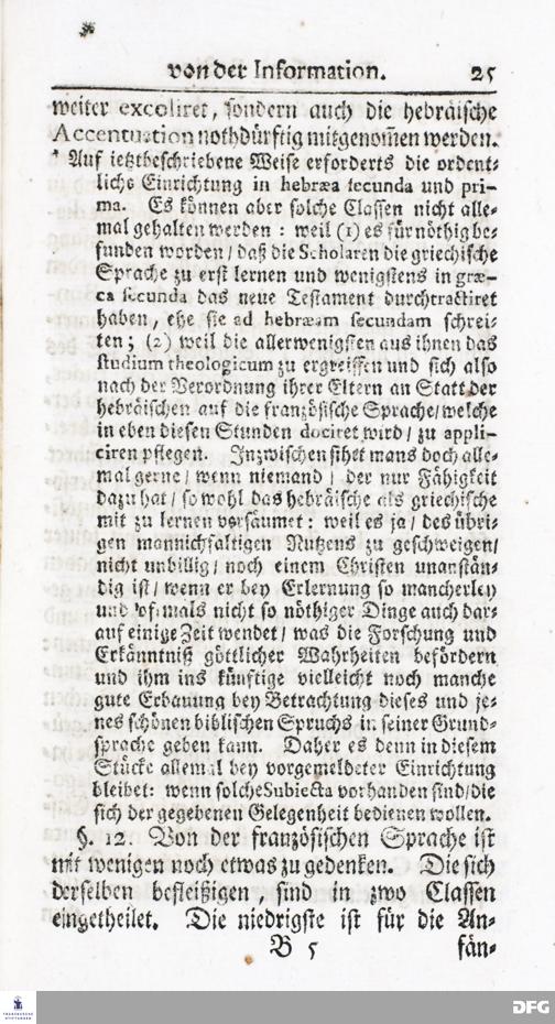Kurzer Bericht Von der Gegenwärtigen Verfassung Des PAEDAGOGII REGII Zu Glaucha vor Halle / Aus der vormals schon edirten, nunmehro aber in vielen Stücken nach und nach verbesserten Ordnung und Lehrart herausgezogen. HALLE, Zu finden im Wäisenhause, MDCCXIV.