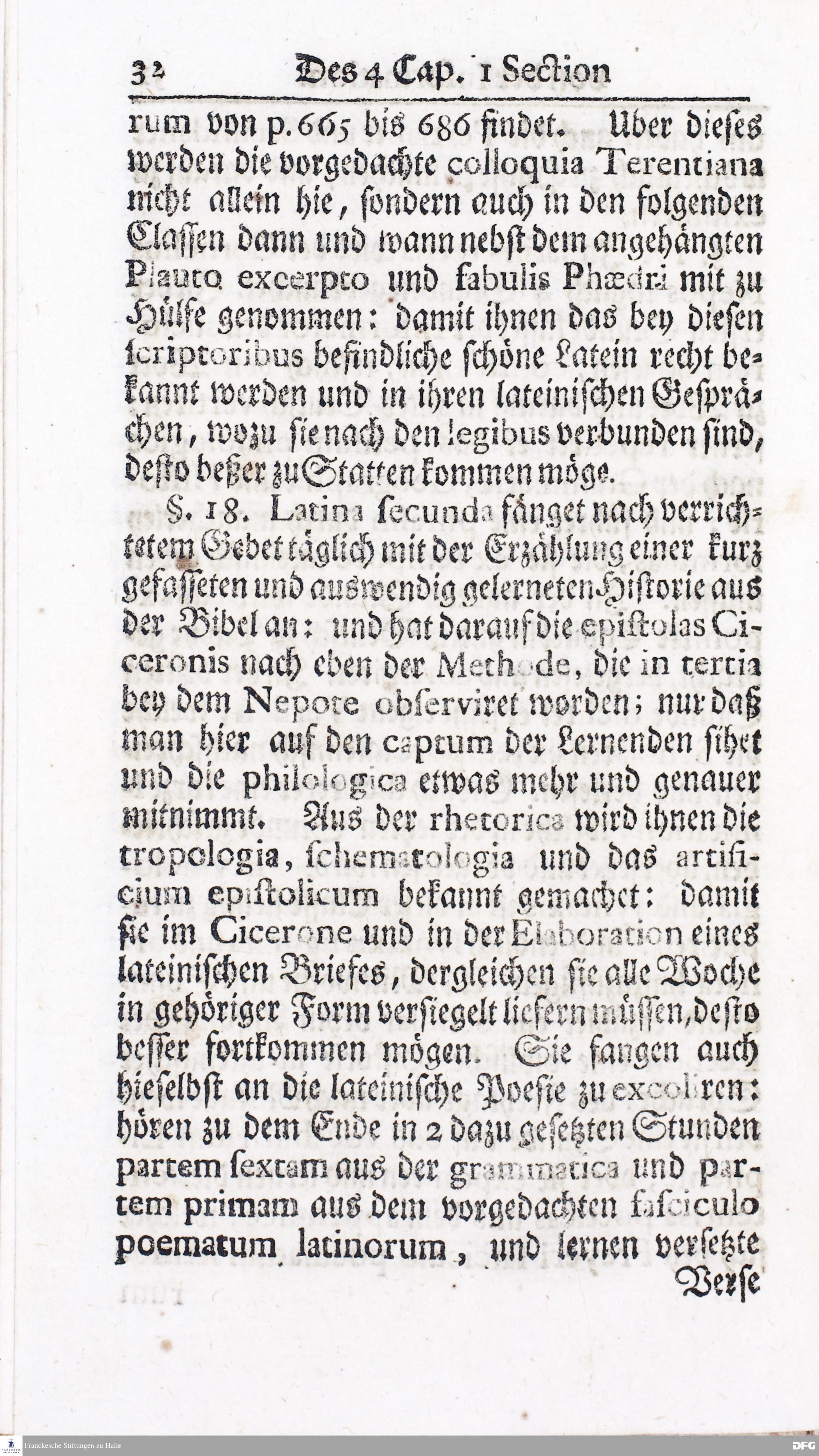 Kurzer Bericht Von der Gegenwärtigen Verfassung Des PAEDAGOGII REGII Zu Glaucha vor Halle / Aus der vormals schon edirten, nunmehro aber in vielen Stücken nach und nach verbesserten Ordnung und Lehrart herausgezogen. HALLE, Zu finden im Wäisenhause, MDCCXIV.