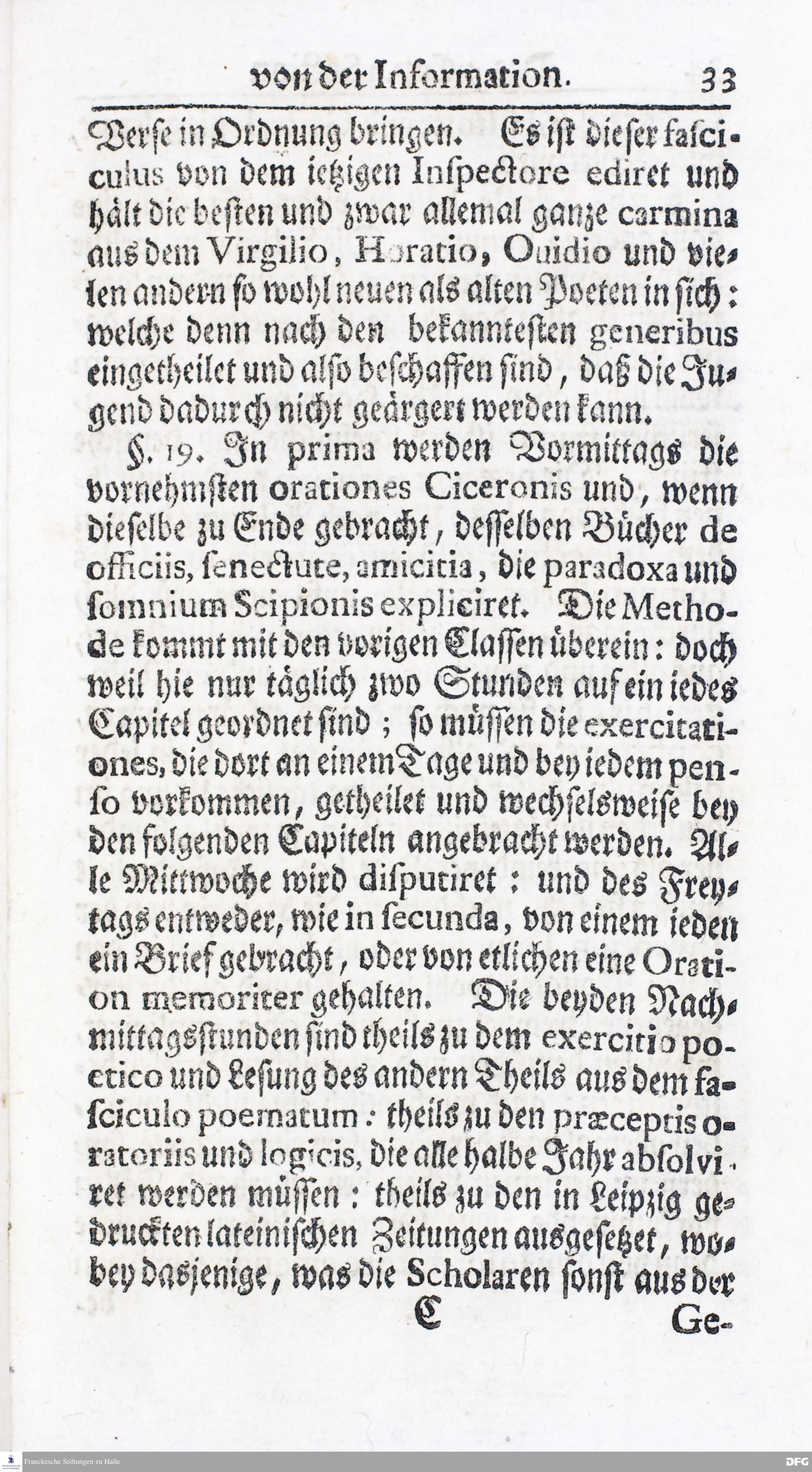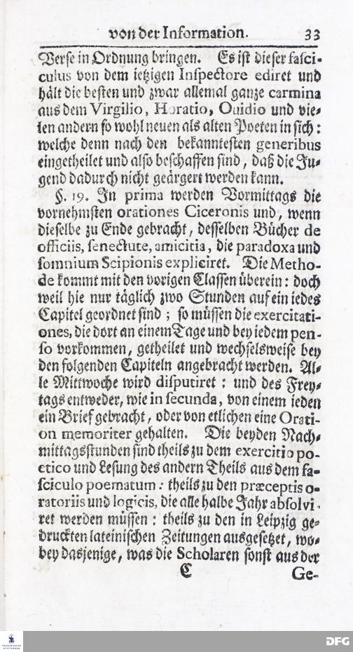 Kurzer Bericht Von der Gegenwärtigen Verfassung Des PAEDAGOGII REGII Zu Glaucha vor Halle / Aus der vormals schon edirten, nunmehro aber in vielen Stücken nach und nach verbesserten Ordnung und Lehrart herausgezogen. HALLE, Zu finden im Wäisenhause, MDCCXIV.