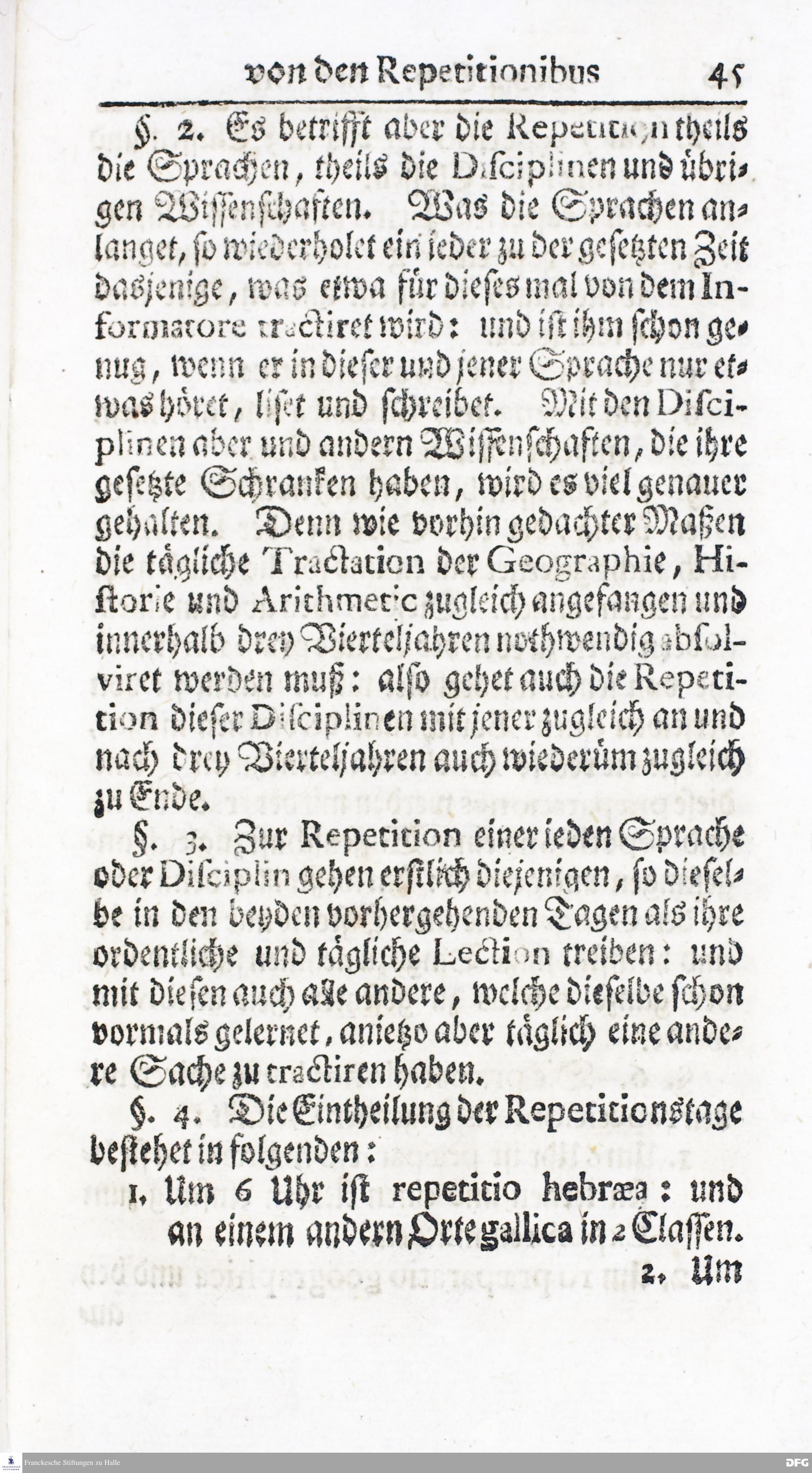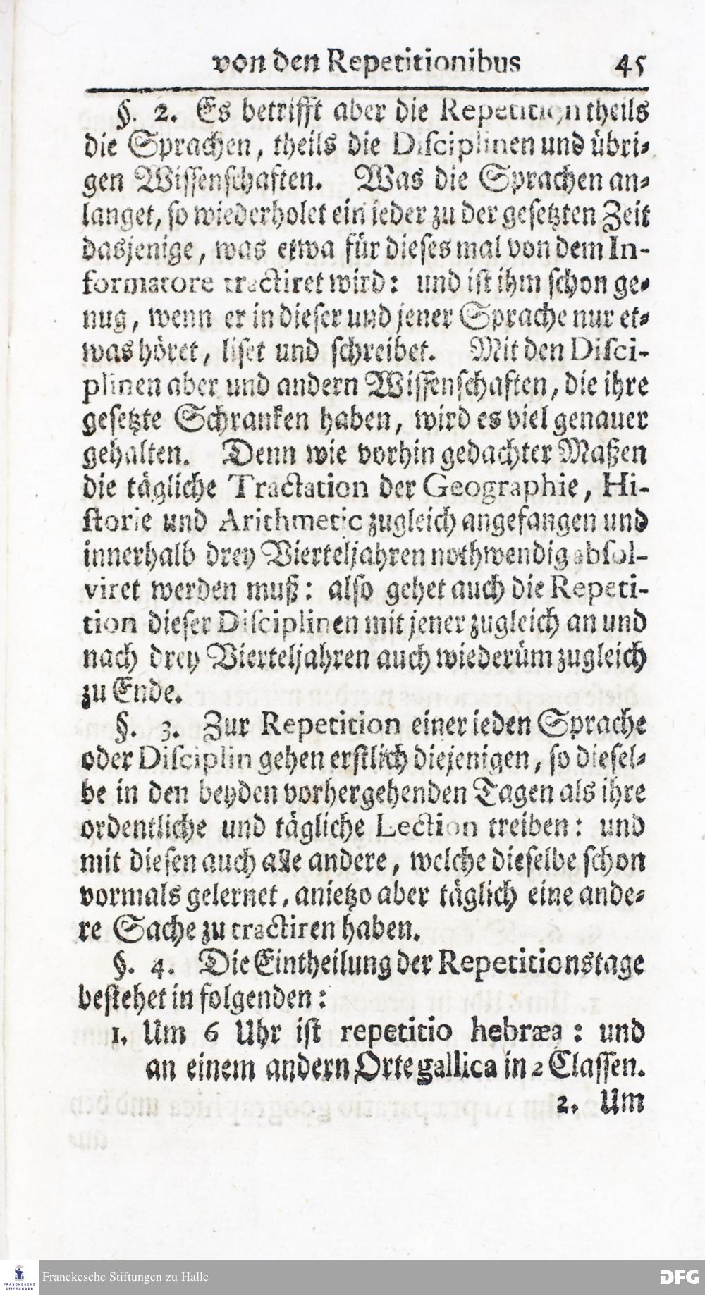 Kurzer Bericht Von der Gegenwärtigen Verfassung Des PAEDAGOGII REGII Zu Glaucha vor Halle / Aus der vormals schon edirten, nunmehro aber in vielen Stücken nach und nach verbesserten Ordnung und Lehrart herausgezogen. HALLE, Zu finden im Wäisenhause, MDCCXIV.