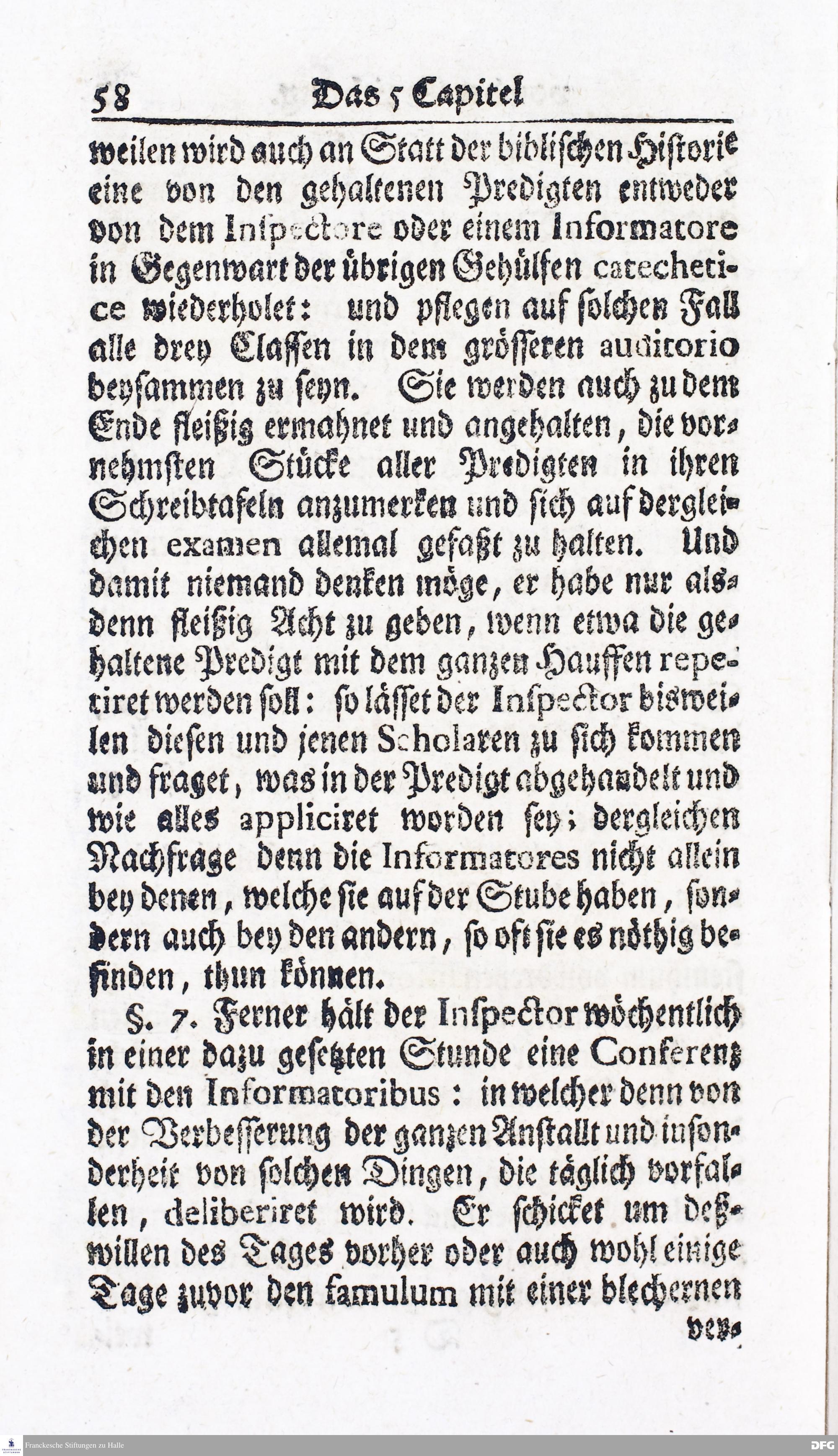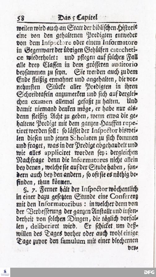 Kurzer Bericht Von der Gegenwärtigen Verfassung Des PAEDAGOGII REGII Zu Glaucha vor Halle / Aus der vormals schon edirten, nunmehro aber in vielen Stücken nach und nach verbesserten Ordnung und Lehrart herausgezogen. HALLE, Zu finden im Wäisenhause, MDCCXIV.