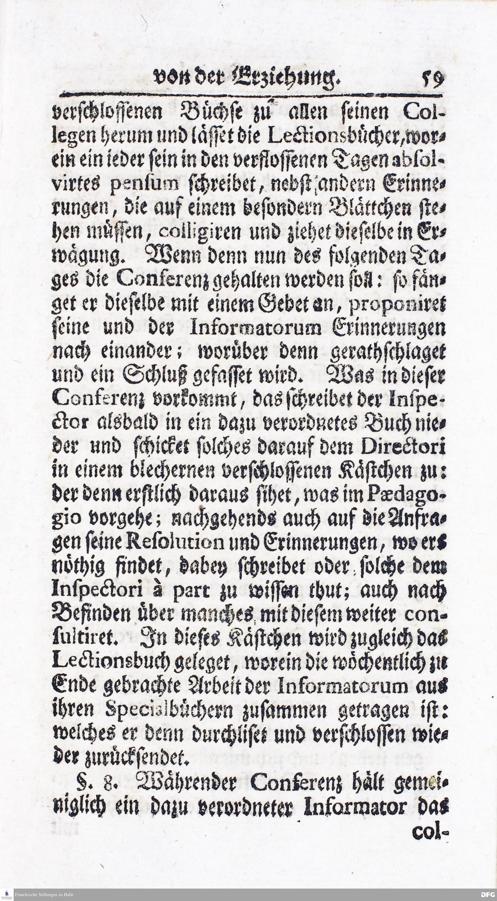 Kurzer Bericht Von der Gegenwärtigen Verfassung Des PAEDAGOGII REGII Zu Glaucha vor Halle / Aus der vormals schon edirten, nunmehro aber in vielen Stücken nach und nach verbesserten Ordnung und Lehrart herausgezogen. HALLE, Zu finden im Wäisenhause, MDCCXIV.