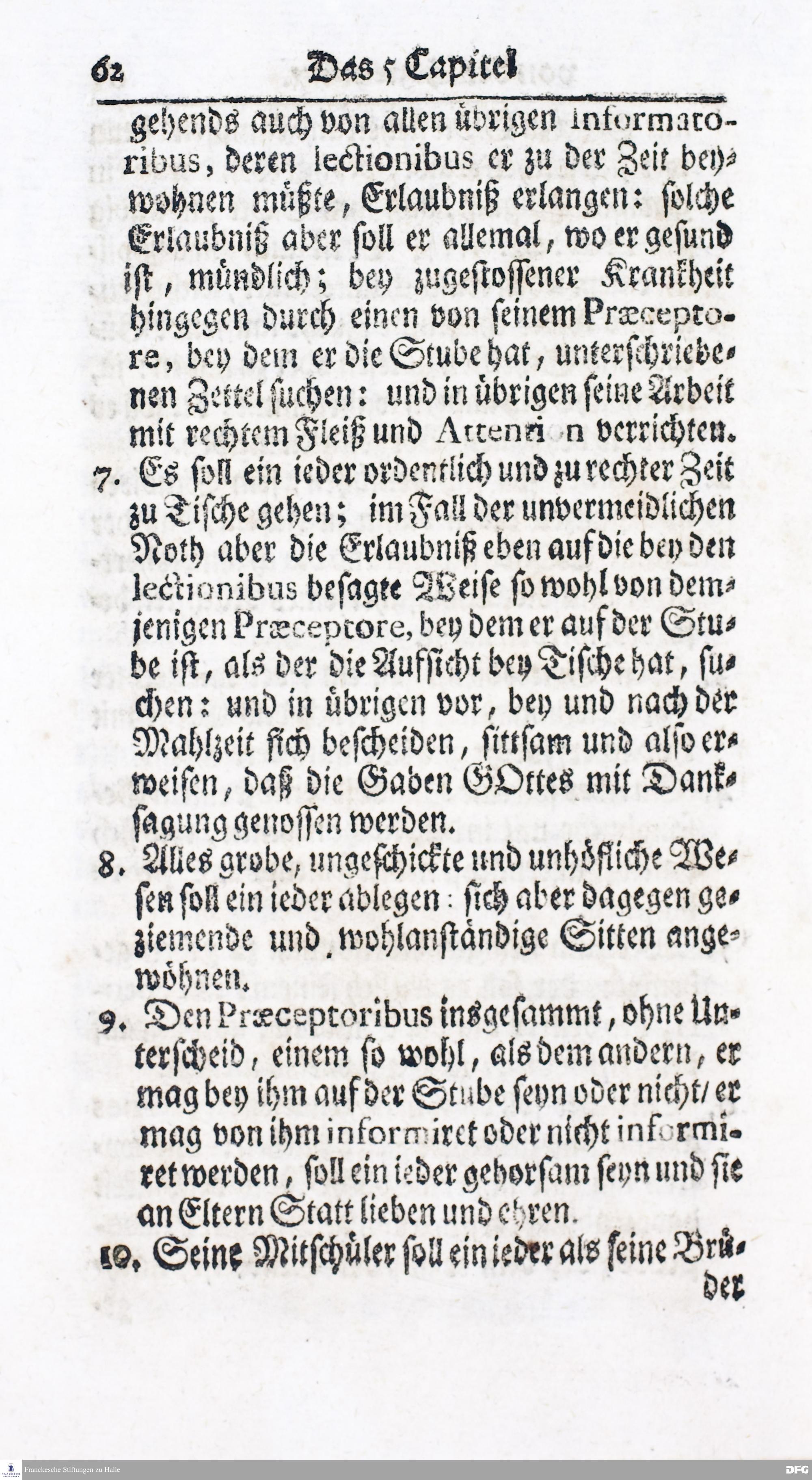 Kurzer Bericht Von der Gegenwärtigen Verfassung Des PAEDAGOGII REGII Zu Glaucha vor Halle / Aus der vormals schon edirten, nunmehro aber in vielen Stücken nach und nach verbesserten Ordnung und Lehrart herausgezogen. HALLE, Zu finden im Wäisenhause, MDCCXIV.