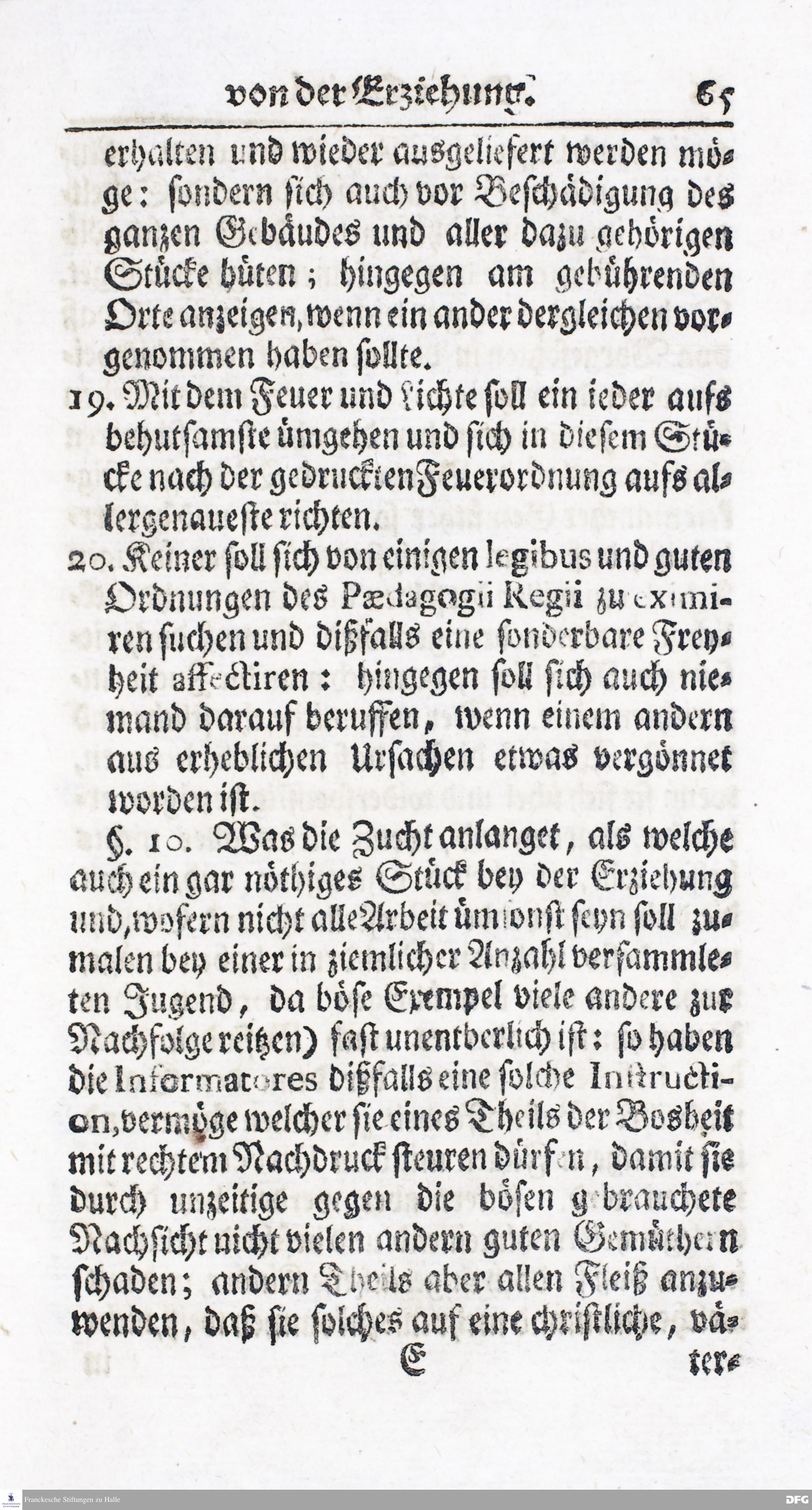 Kurzer Bericht Von der Gegenwärtigen Verfassung Des PAEDAGOGII REGII Zu Glaucha vor Halle / Aus der vormals schon edirten, nunmehro aber in vielen Stücken nach und nach verbesserten Ordnung und Lehrart herausgezogen. HALLE, Zu finden im Wäisenhause, MDCCXIV.