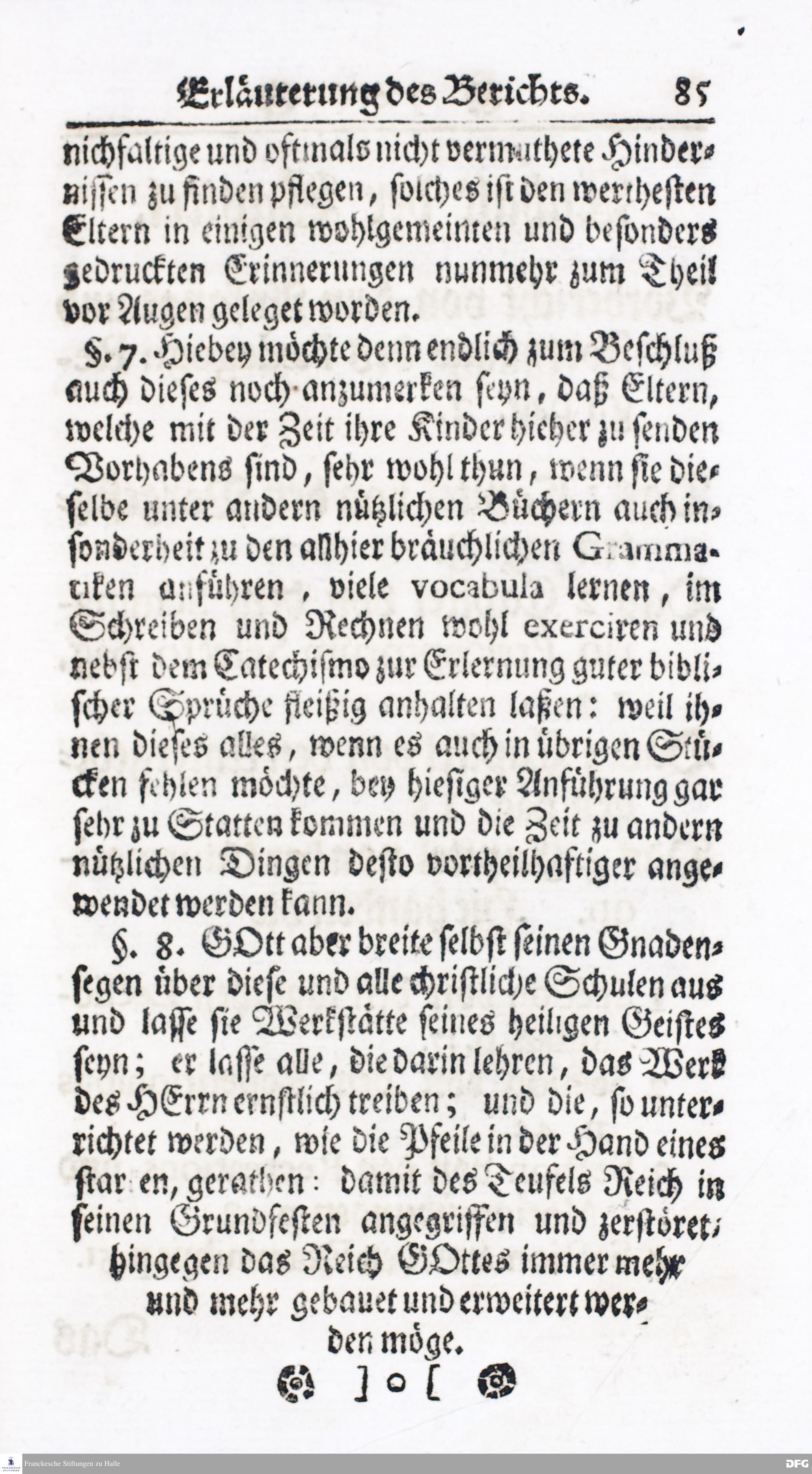 Kurzer Bericht Von der Gegenwärtigen Verfassung Des PAEDAGOGII REGII Zu Glaucha vor Halle / Aus der vormals schon edirten, nunmehro aber in vielen Stücken nach und nach verbesserten Ordnung und Lehrart herausgezogen. HALLE, Zu finden im Wäisenhause, MDCCXIV.