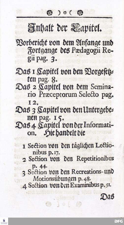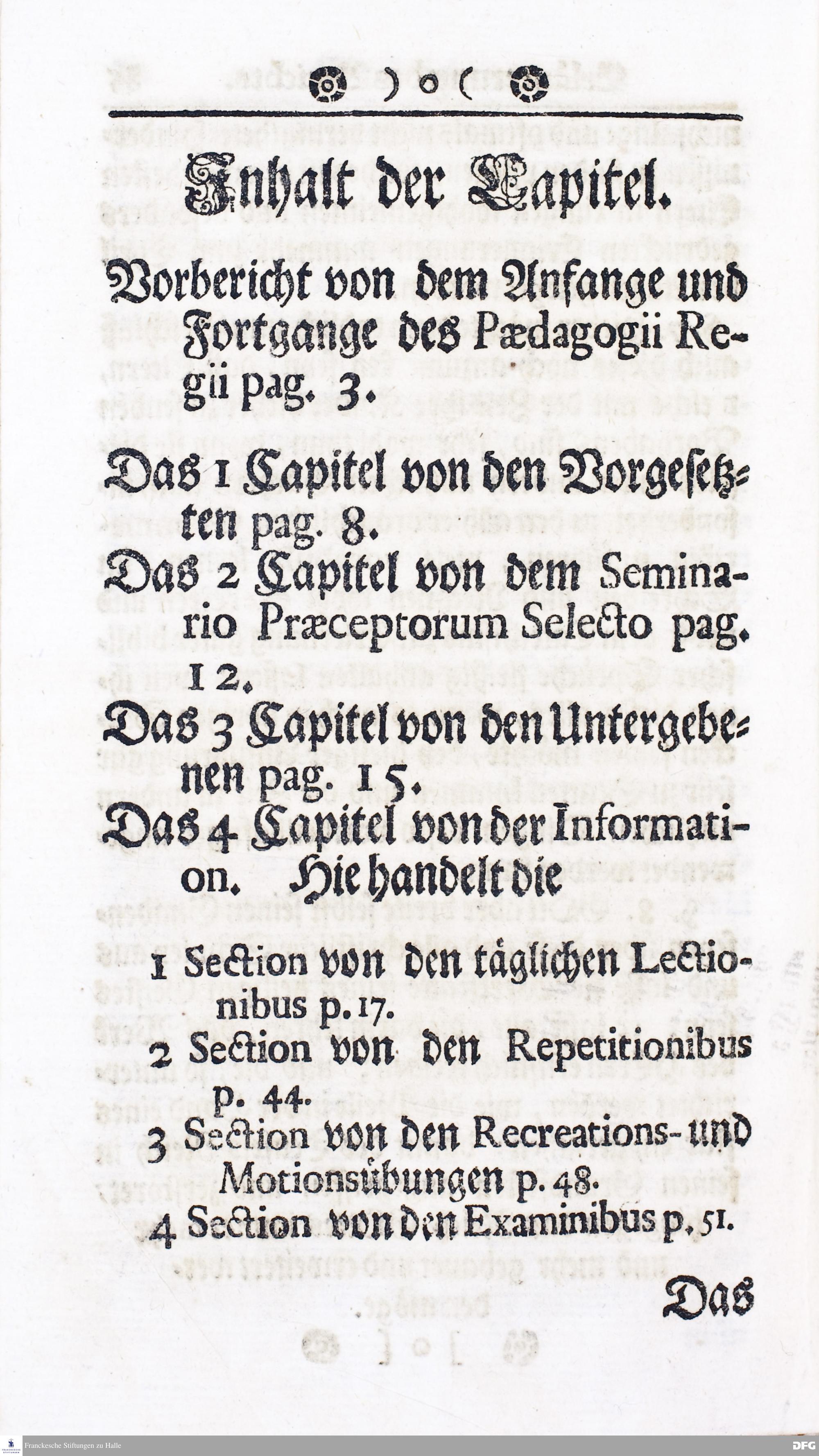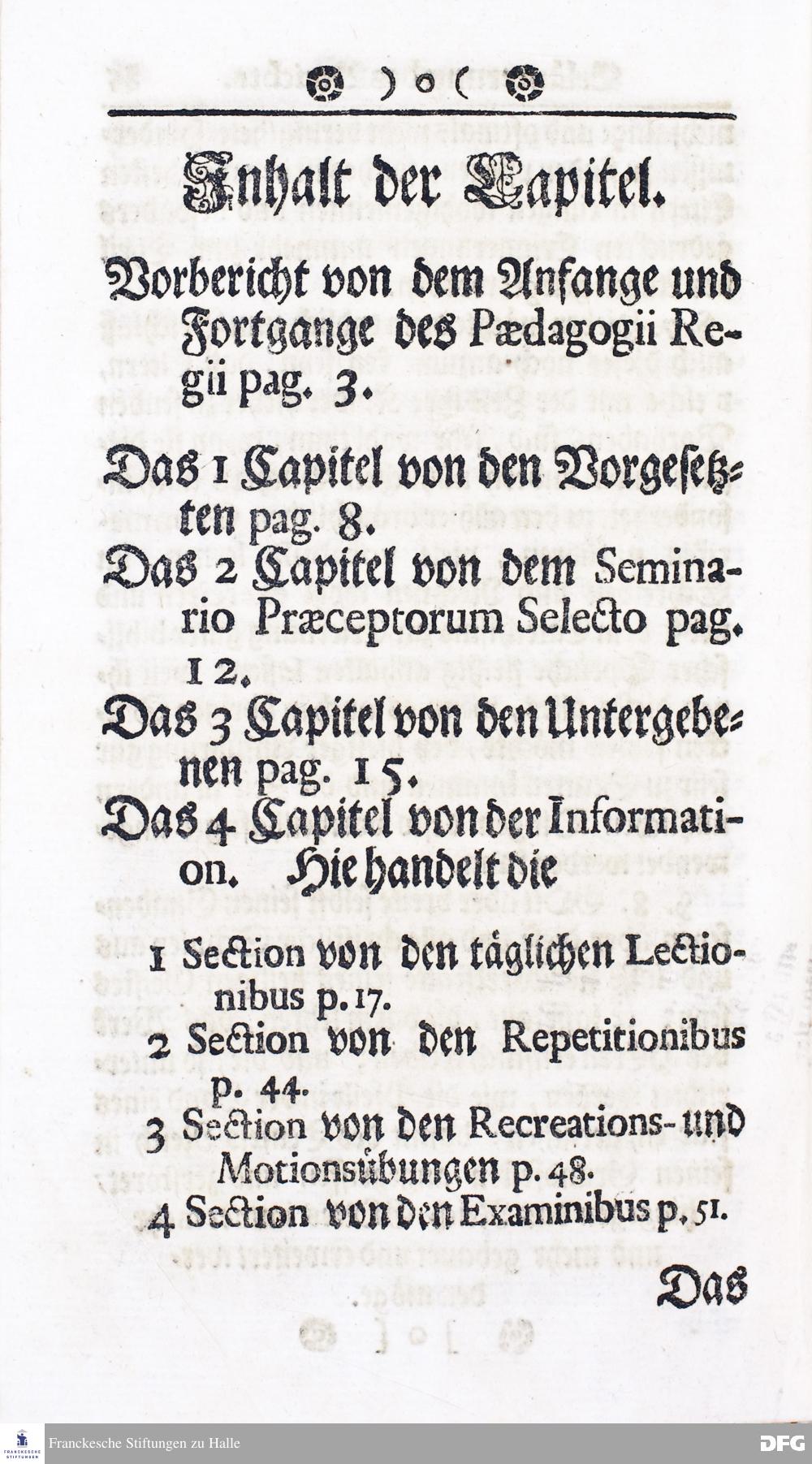 Kurzer Bericht Von der Gegenwärtigen Verfassung Des PAEDAGOGII REGII Zu Glaucha vor Halle / Aus der vormals schon edirten, nunmehro aber in vielen Stücken nach und nach verbesserten Ordnung und Lehrart herausgezogen. HALLE, Zu finden im Wäisenhause, MDCCXIV.
