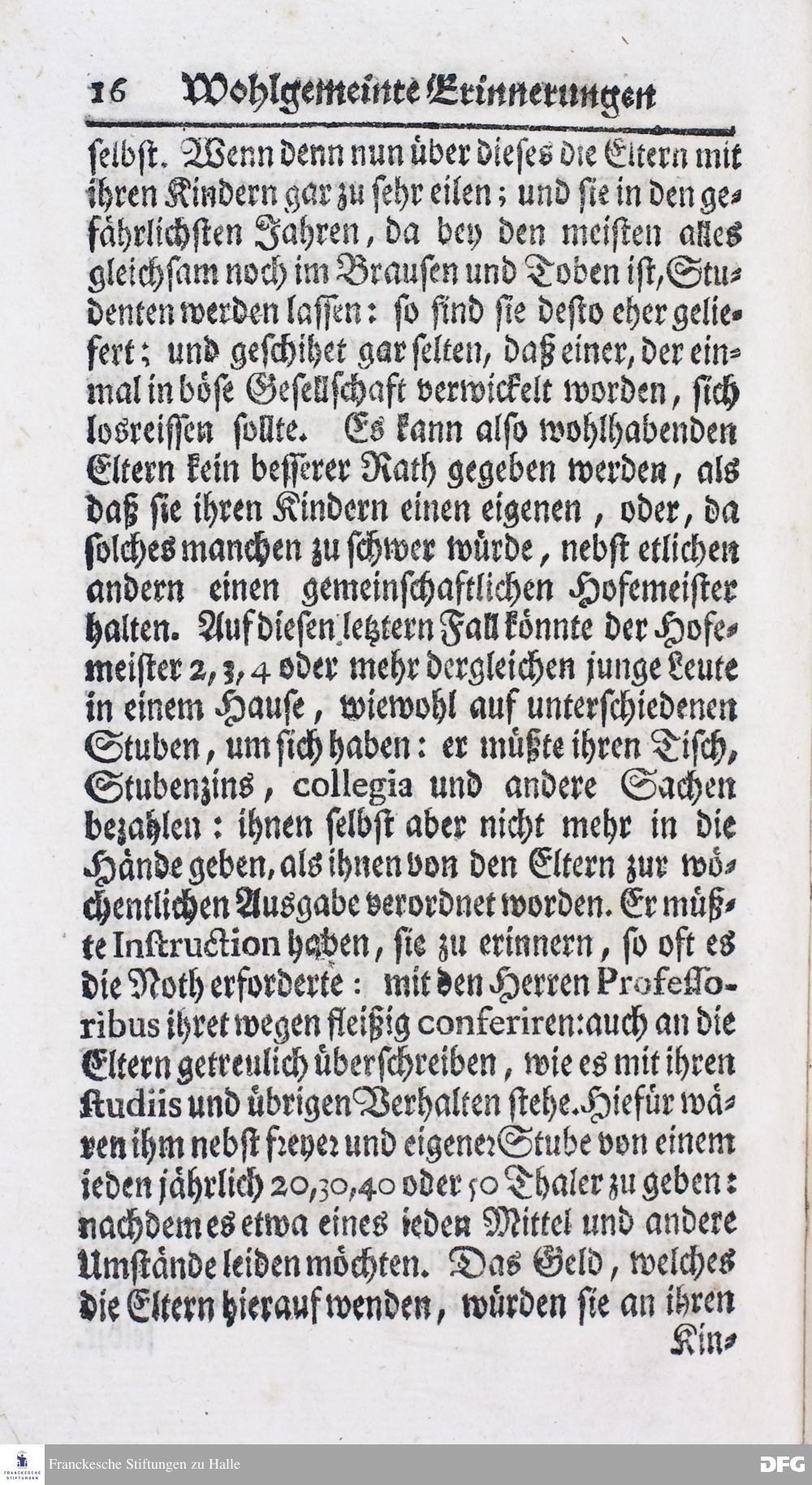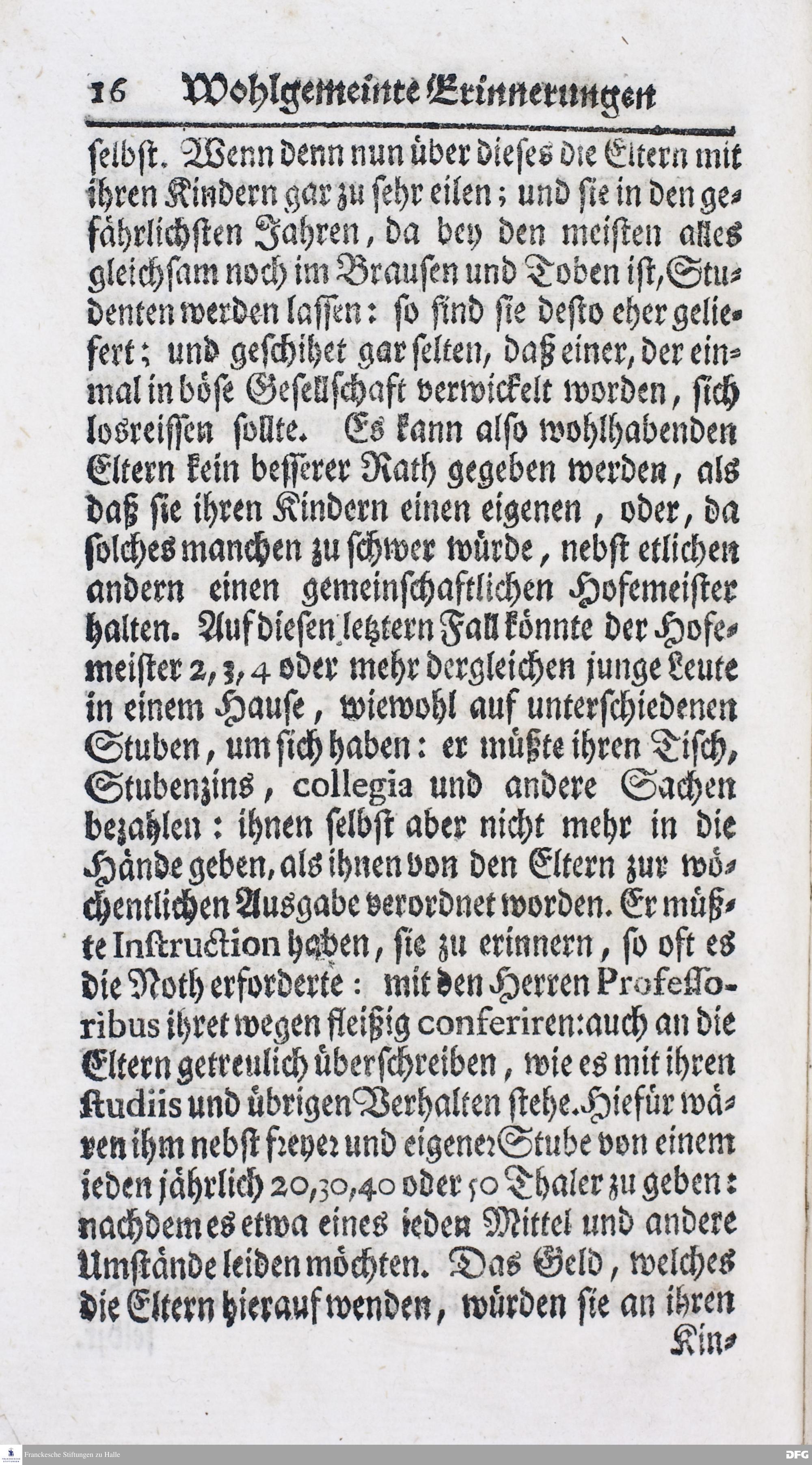 Wohlgemeinte Erinnerungen an die wertheste Eltern / so Ihre Kinder im PAEDAGOGIO REGIO zu Glaucha vor Halle erziehen lassen.