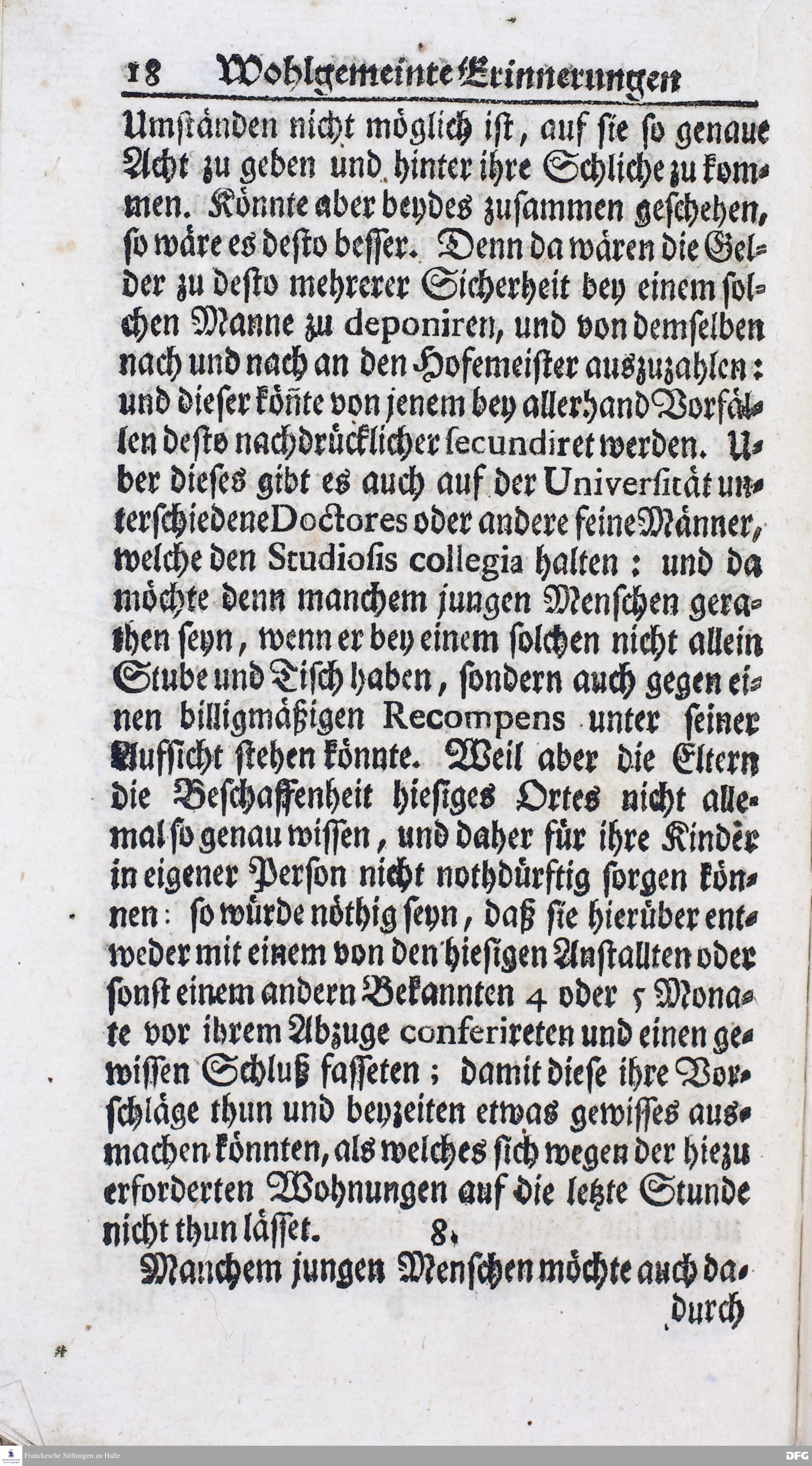 Wohlgemeinte Erinnerungen an die wertheste Eltern / so Ihre Kinder im PAEDAGOGIO REGIO zu Glaucha vor Halle erziehen lassen.