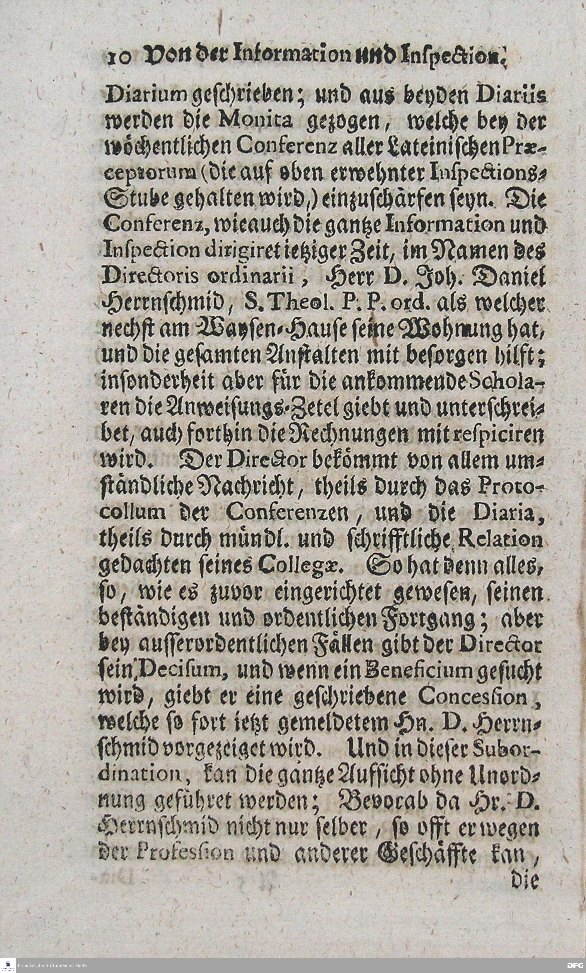 Kurtzer Bericht von der Gegenwärtigen Einrichtung Und Beschaffenheit Der Lateinischen Schule des Waysenhauses zu Glaucha an Halle, samt angehängten Nöthigen Erinnerungen An die lieben Eltern der Scholaren; Wie auch Eine Summarische Anzeige Der zur jährlichen Unterhaltung erforderlichen Kosten: Zum Dienst derer, Welche Nachfrage zu thun pflegen, im Druck vorgeleget Von dem Directore der gesammten Anstalten August Hermann Francken, SS.Theol.P.P.Ord.Past.Vlric. und Scholarcha. HALLE / zu finden im Waysenhause. MDCCXX.