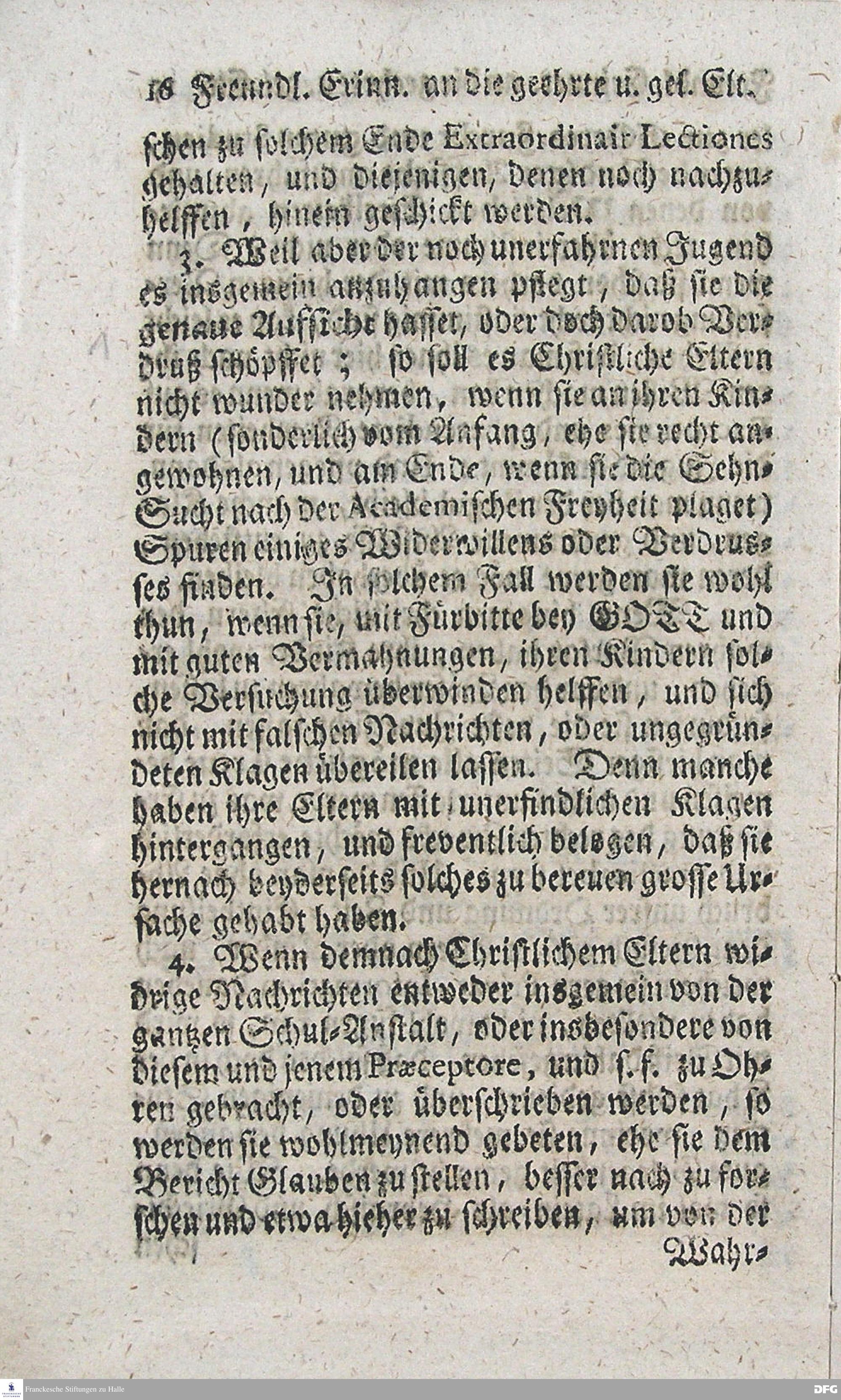 Kurtzer Bericht von der Gegenwärtigen Einrichtung Und Beschaffenheit Der Lateinischen Schule des Waysenhauses zu Glaucha an Halle, samt angehängten Nöthigen Erinnerungen An die lieben Eltern der Scholaren; Wie auch Eine Summarische Anzeige Der zur jährlichen Unterhaltung erforderlichen Kosten: Zum Dienst derer, Welche Nachfrage zu thun pflegen, im Druck vorgeleget Von dem Directore der gesammten Anstalten August Hermann Francken, SS.Theol.P.P.Ord.Past.Vlric. und Scholarcha. HALLE / zu finden im Waysenhause. MDCCXX.