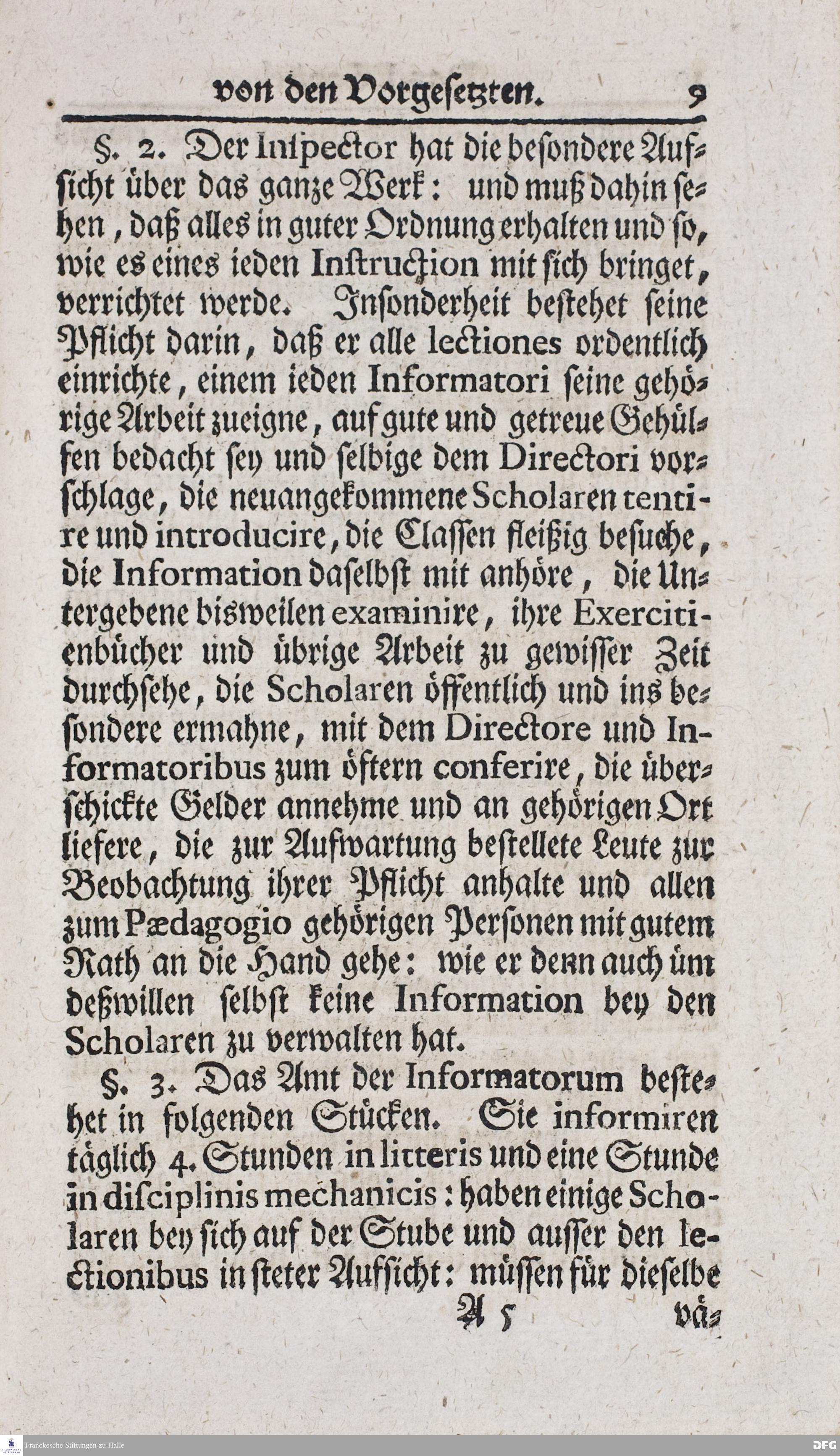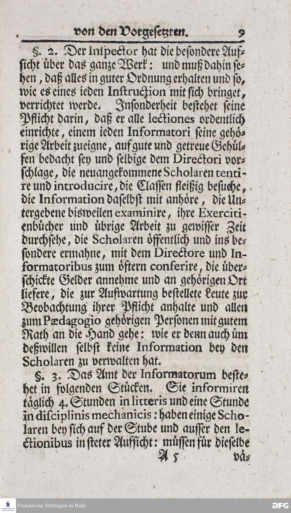 Kurzer Bericht Von der Gegenwärtigen Verfassung Des PAEDAGOGII REGII Zu Glaucha vor Halle / Aus der vormals schon edirten, nunmehro aber in vielen Stücken nach und nach verbesserten Ordnung und Lehrart herausgezogen und wiederholet. HALLE, Zu finden im Wäisenhause, MDCCXIII.