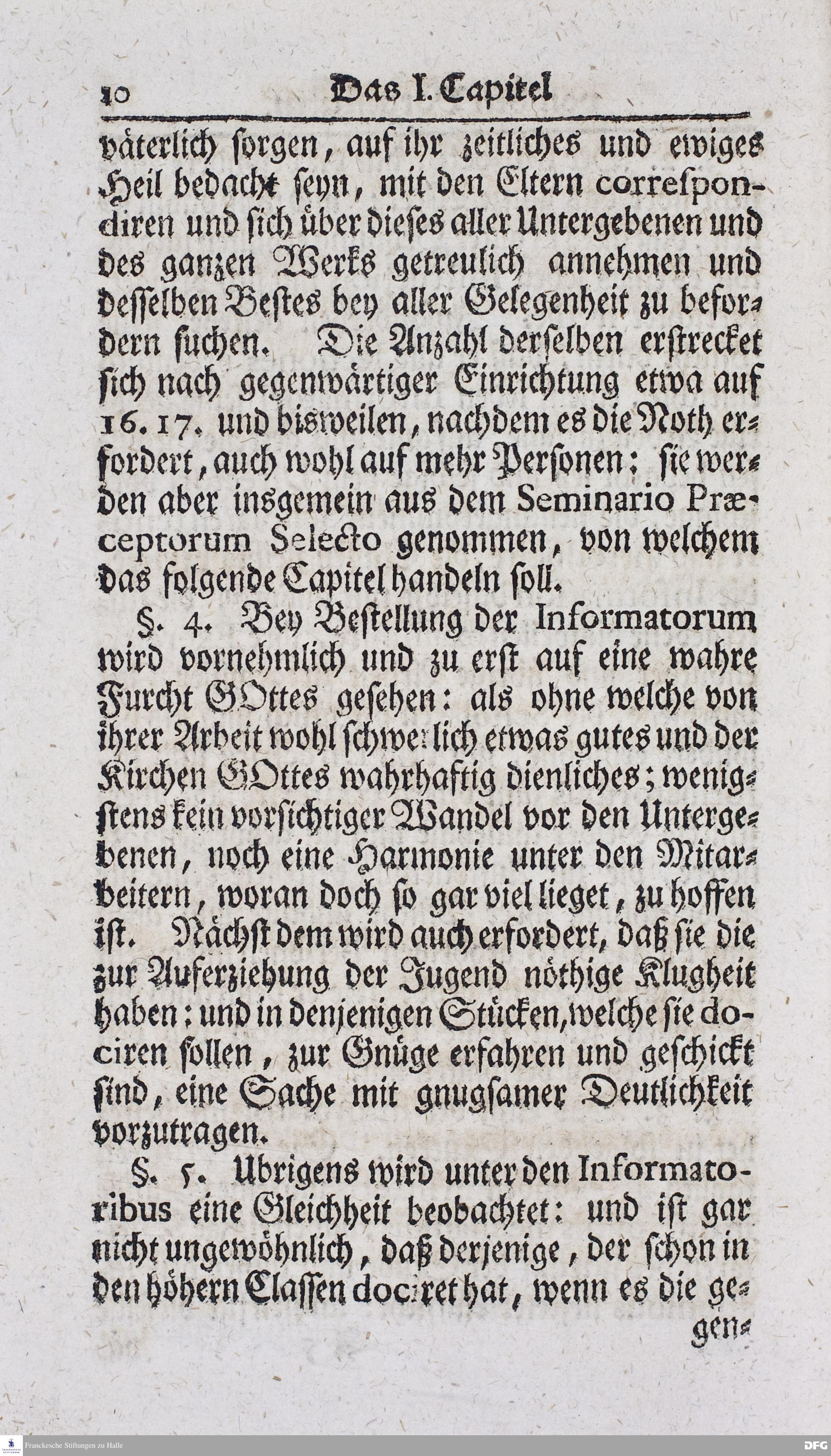 Kurzer Bericht Von der Gegenwärtigen Verfassung Des PAEDAGOGII REGII Zu Glaucha vor Halle / Aus der vormals schon edirten, nunmehro aber in vielen Stücken nach und nach verbesserten Ordnung und Lehrart herausgezogen und wiederholet. HALLE, Zu finden im Wäisenhause, MDCCXIII.