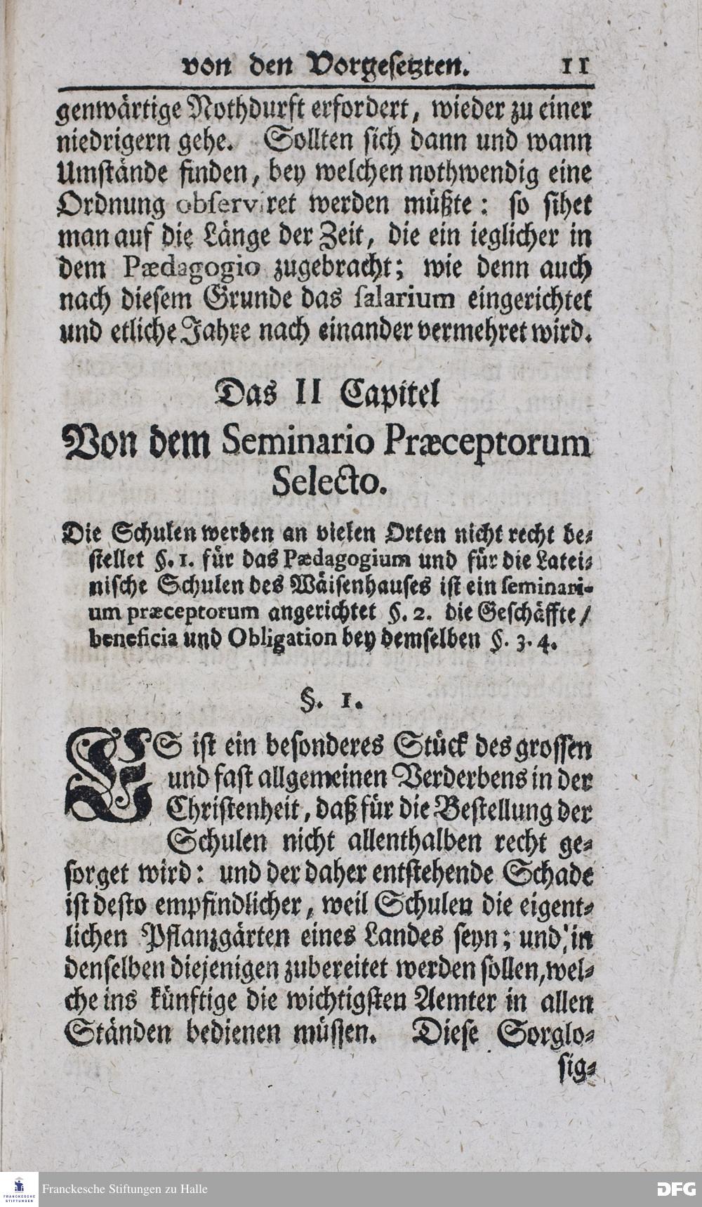 Kurzer Bericht Von der Gegenwärtigen Verfassung Des PAEDAGOGII REGII Zu Glaucha vor Halle / Aus der vormals schon edirten, nunmehro aber in vielen Stücken nach und nach verbesserten Ordnung und Lehrart herausgezogen und wiederholet. HALLE, Zu finden im Wäisenhause, MDCCXIII.