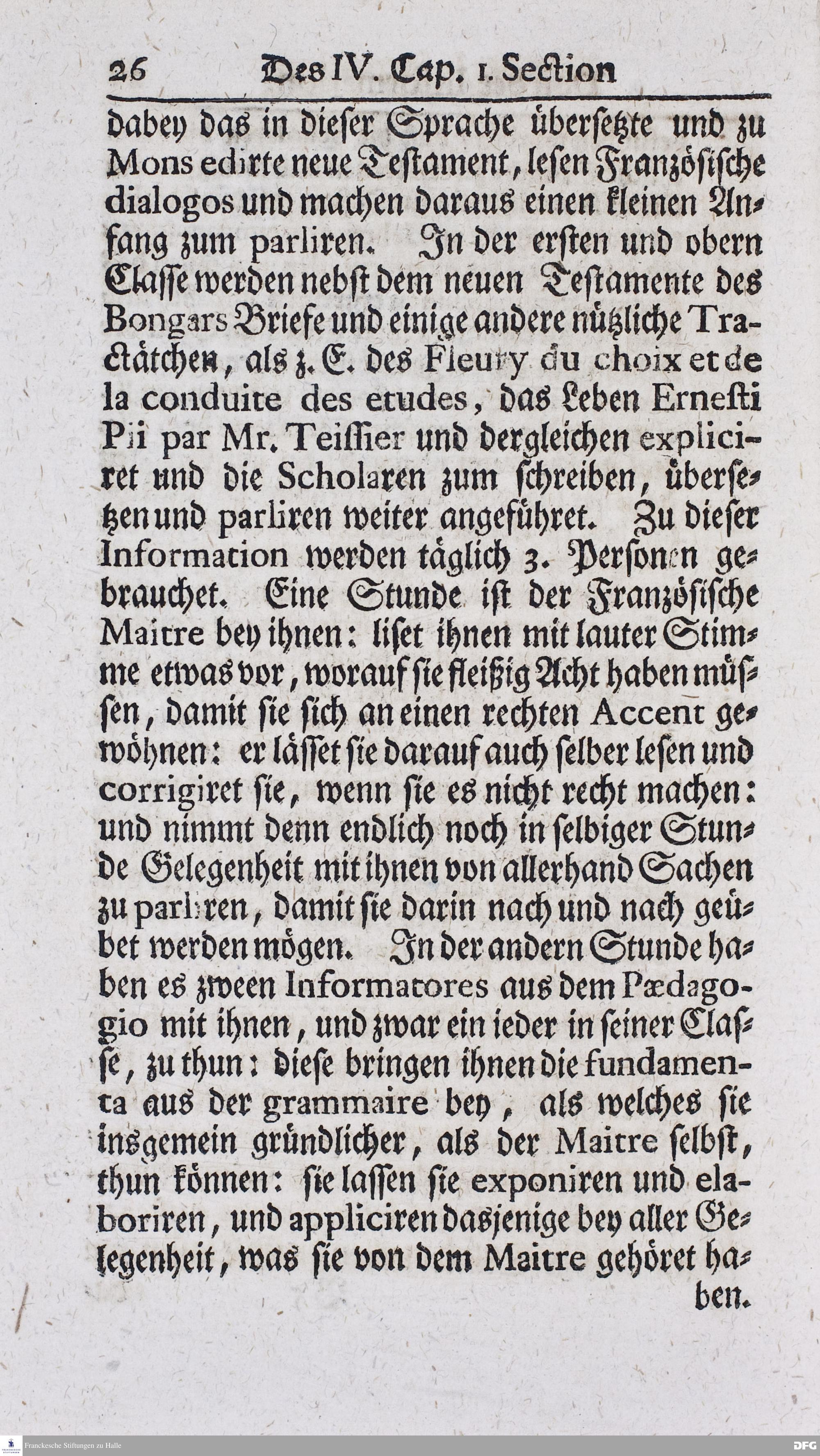 Kurzer Bericht Von der Gegenwärtigen Verfassung Des PAEDAGOGII REGII Zu Glaucha vor Halle / Aus der vormals schon edirten, nunmehro aber in vielen Stücken nach und nach verbesserten Ordnung und Lehrart herausgezogen und wiederholet. HALLE, Zu finden im Wäisenhause, MDCCXIII.