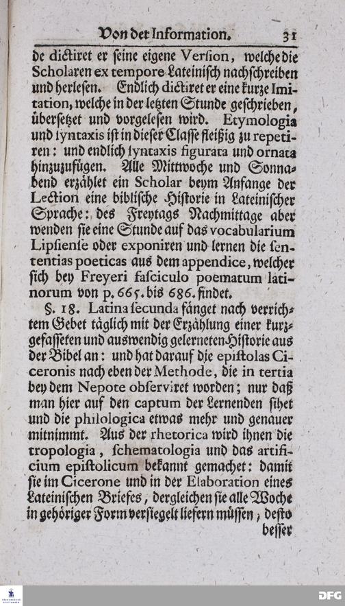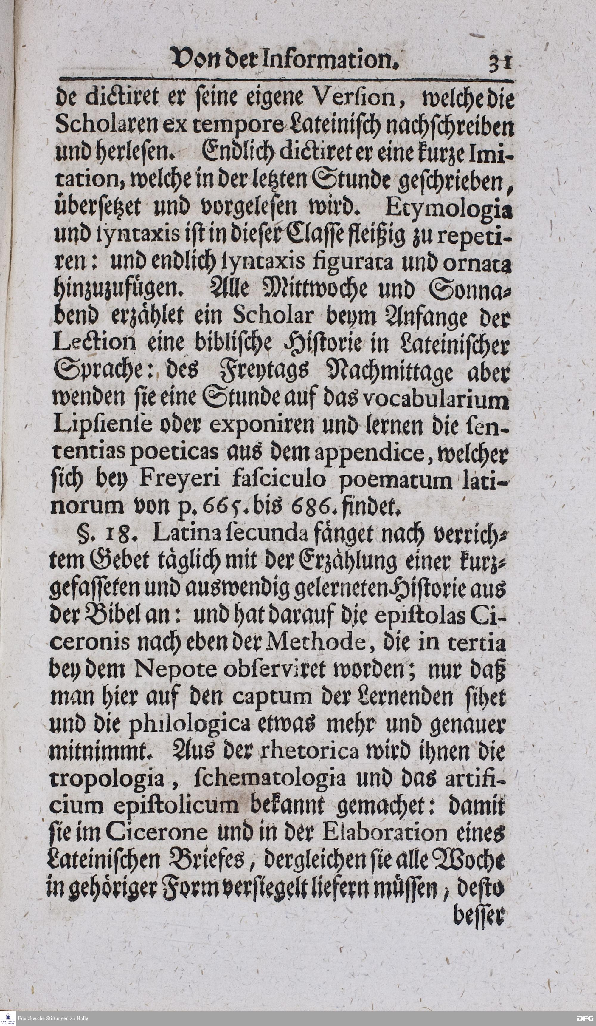 Kurzer Bericht Von der Gegenwärtigen Verfassung Des PAEDAGOGII REGII Zu Glaucha vor Halle / Aus der vormals schon edirten, nunmehro aber in vielen Stücken nach und nach verbesserten Ordnung und Lehrart herausgezogen und wiederholet. HALLE, Zu finden im Wäisenhause, MDCCXIII.