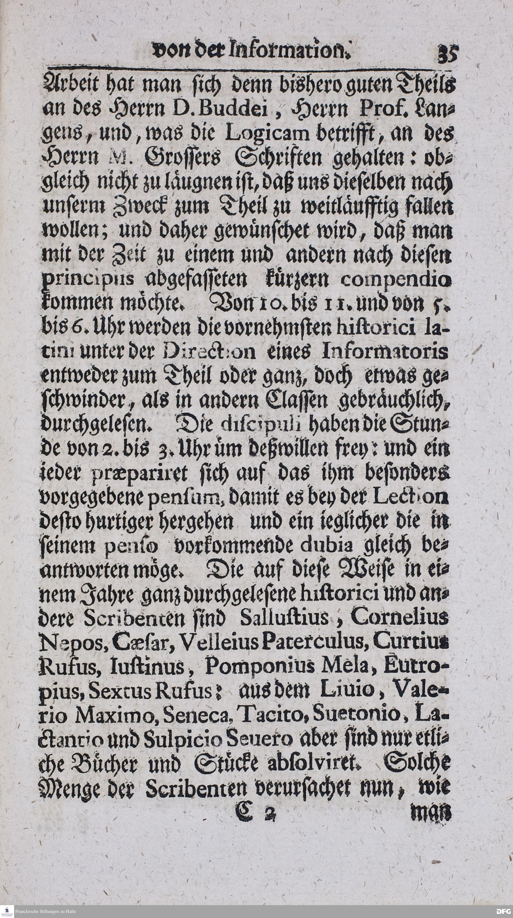 Kurzer Bericht Von der Gegenwärtigen Verfassung Des PAEDAGOGII REGII Zu Glaucha vor Halle / Aus der vormals schon edirten, nunmehro aber in vielen Stücken nach und nach verbesserten Ordnung und Lehrart herausgezogen und wiederholet. HALLE, Zu finden im Wäisenhause, MDCCXIII.